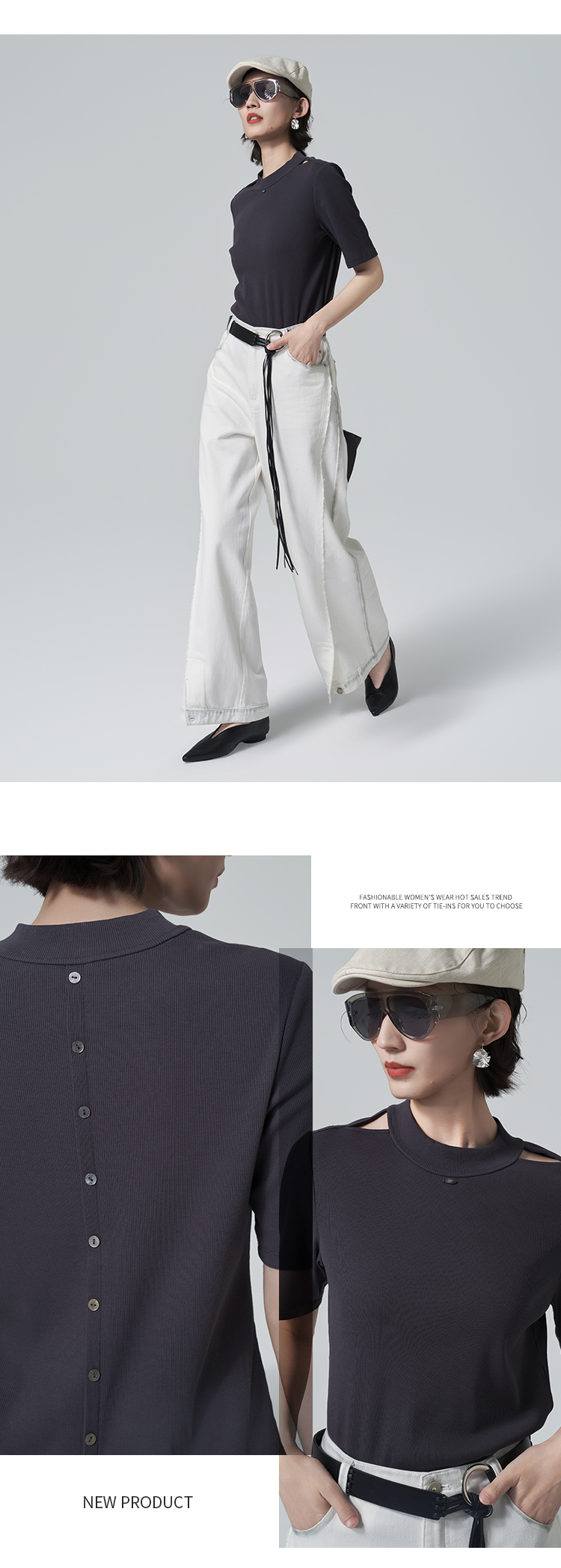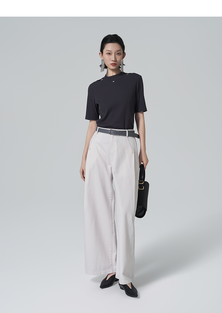 【商场同款】CNA6349 “ 露肩针织T恤 ” 精梳棉螺纹针织T恤 舒适亲肤 小设计更有韵味
