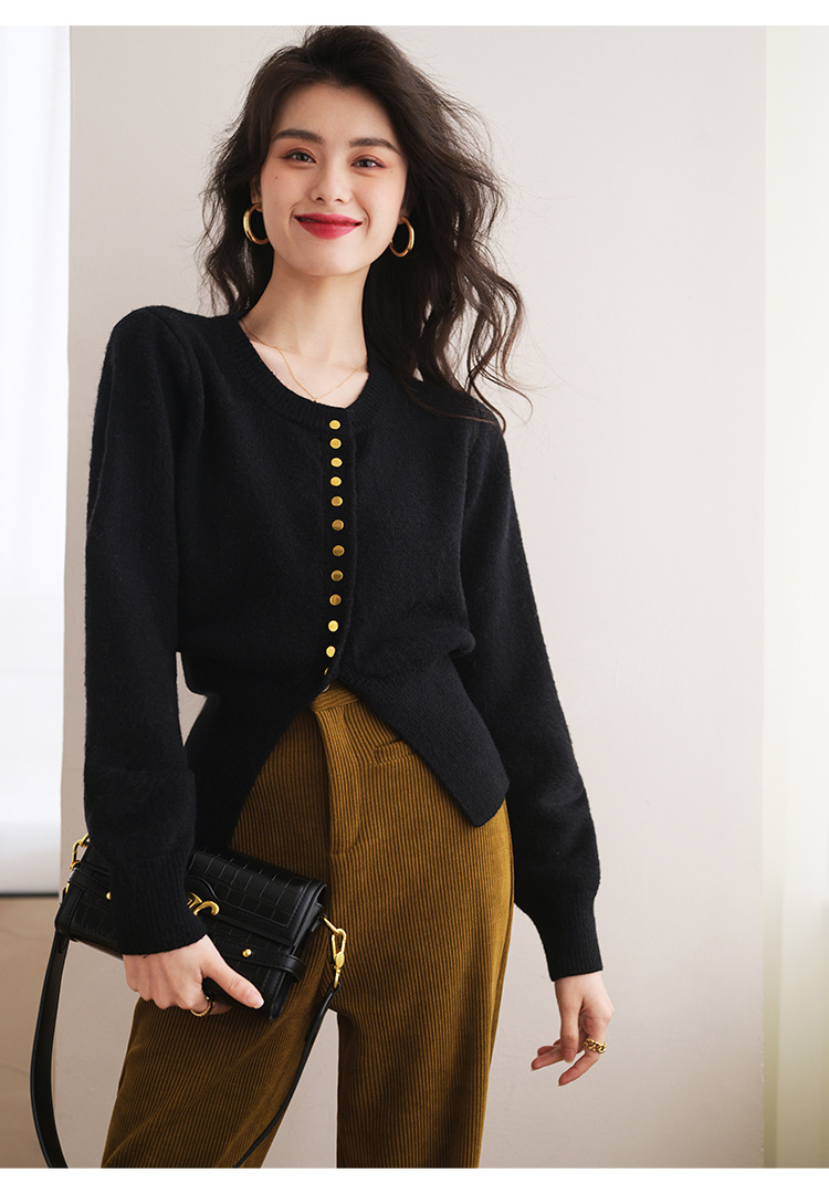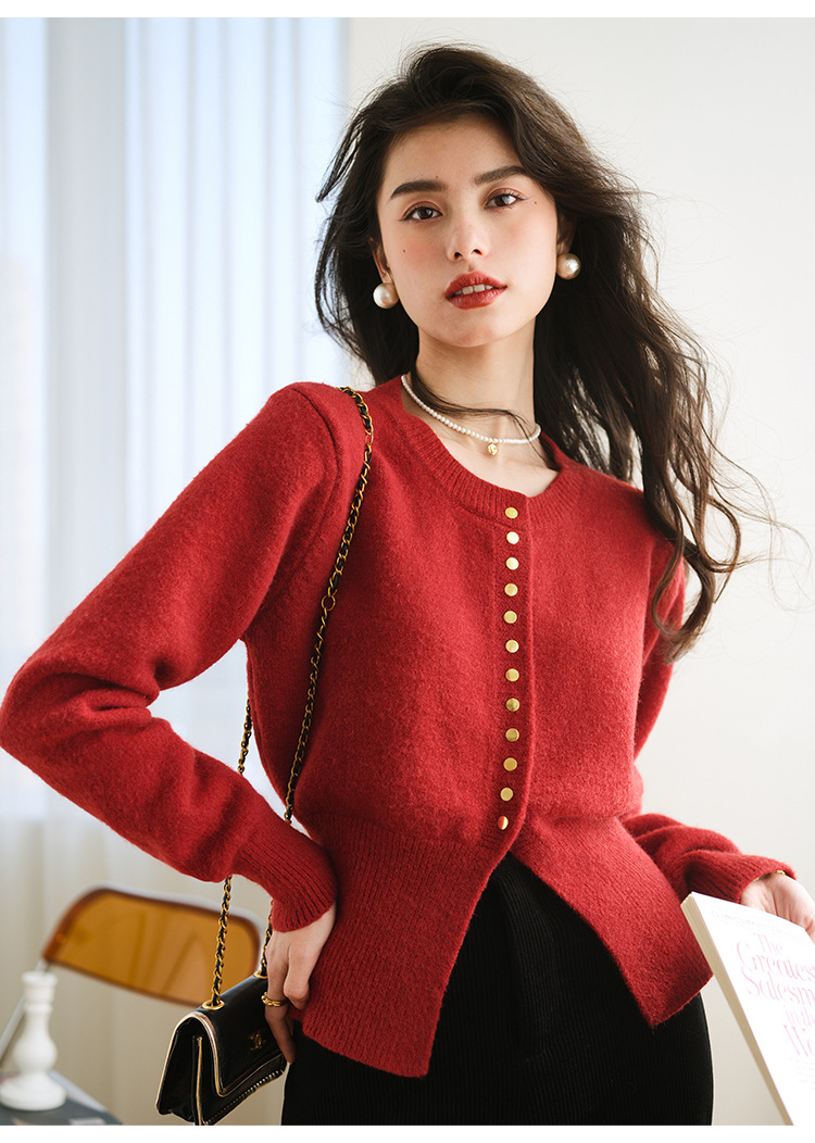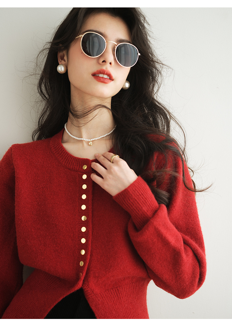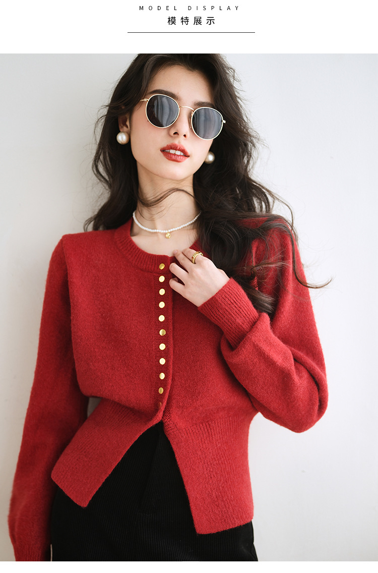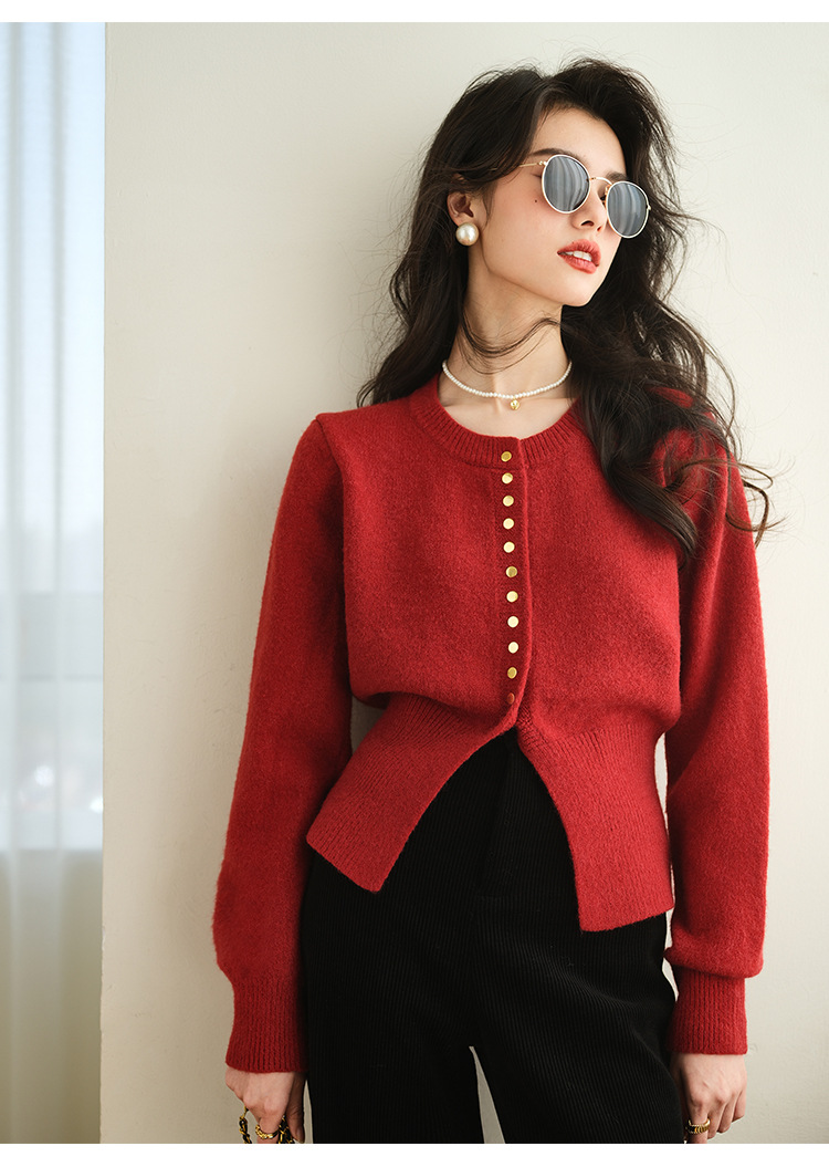 秋冬季【复古圆领毛衣】 女新款上衣潮 小众设计感 别致收腰针织开衫 新年