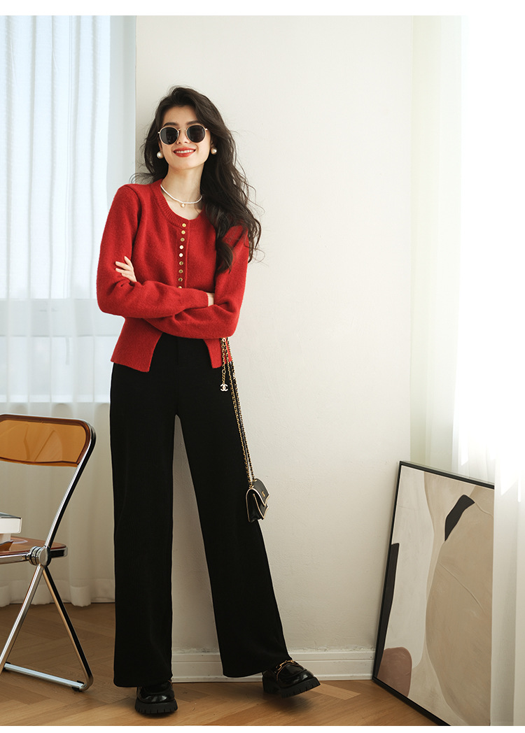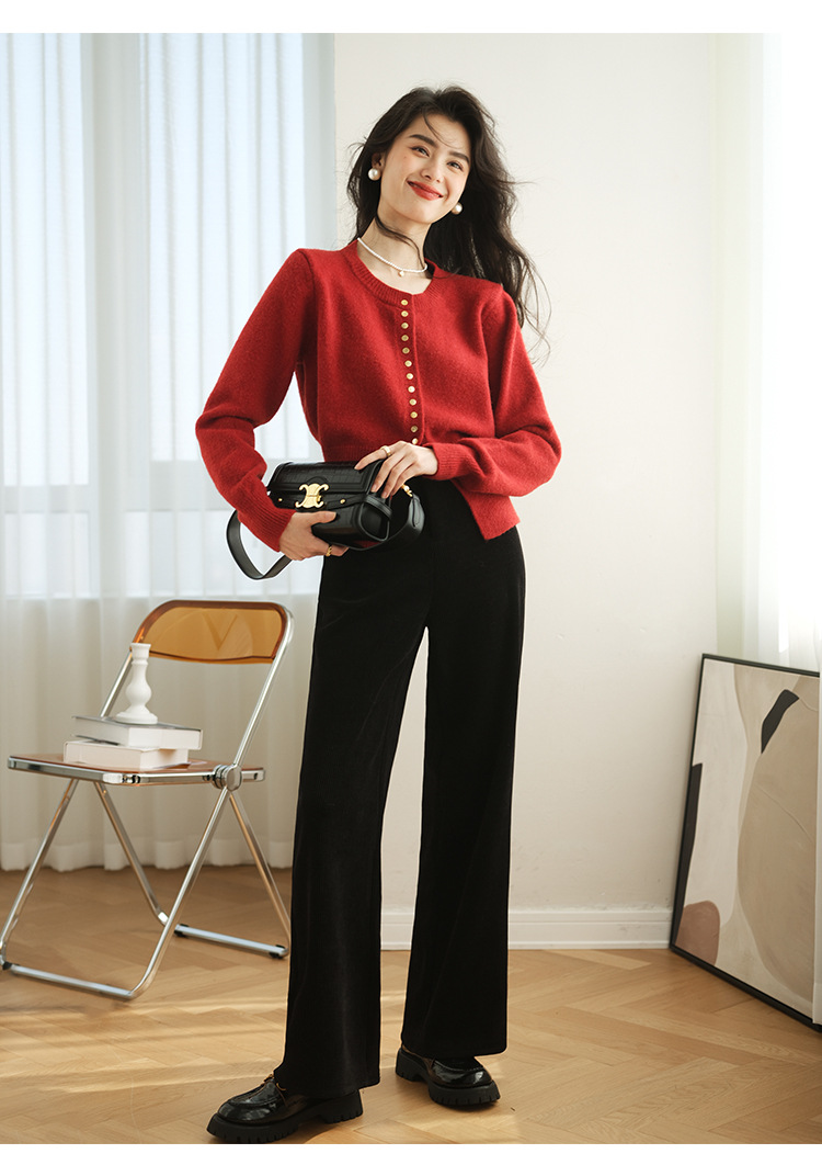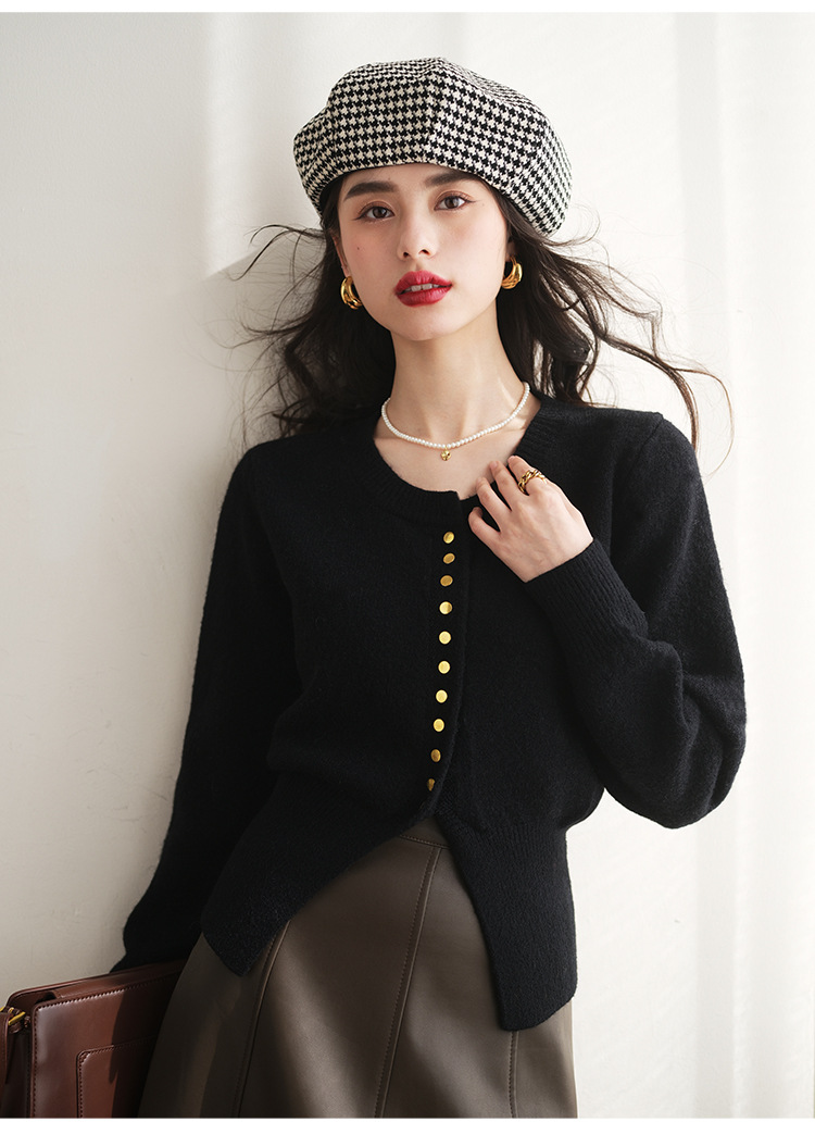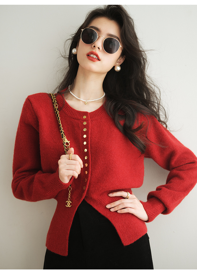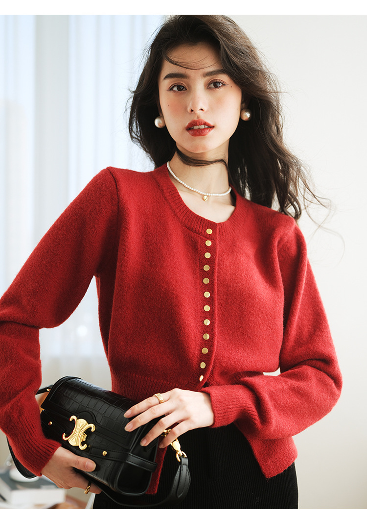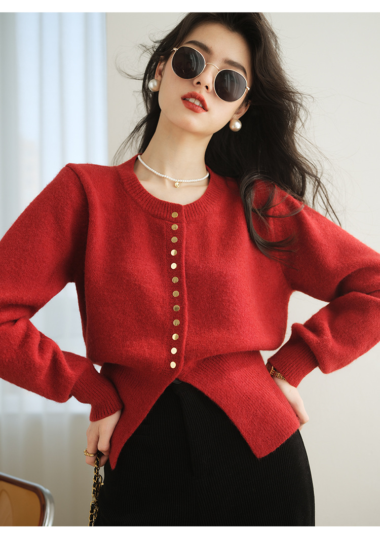秋冬季【复古圆领毛衣】 女新款上衣潮 小众设计感 别致收腰针织开衫 新年