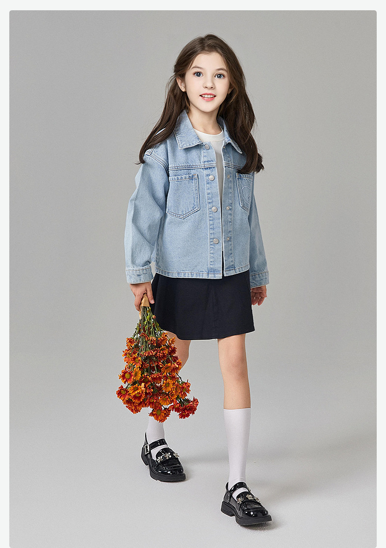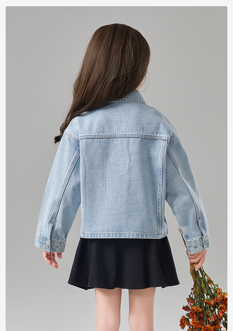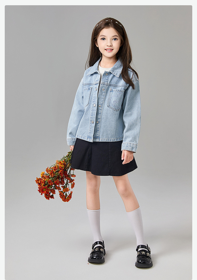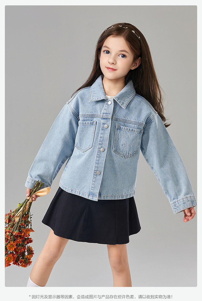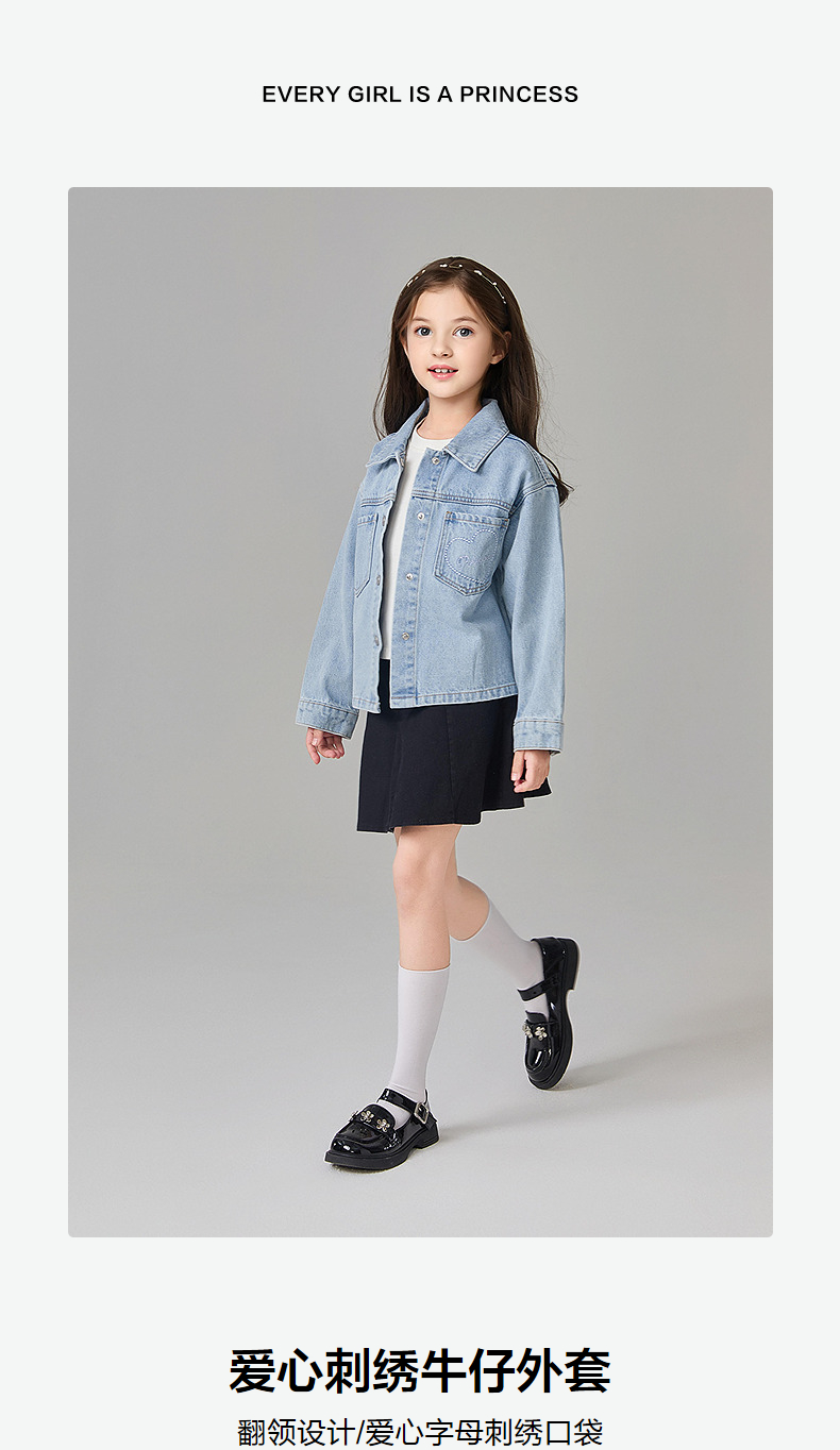 笛莎Deesha 童装女童外套2025春新款爱心刺绣牛仔外套