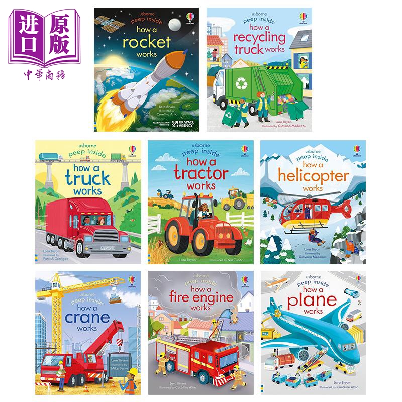 【中商原版】英文原版 尤斯伯恩偷偷看里面系列纸板书8册 Usborne Peep Inside How a Tractor Fire Engine Truck Plane Works