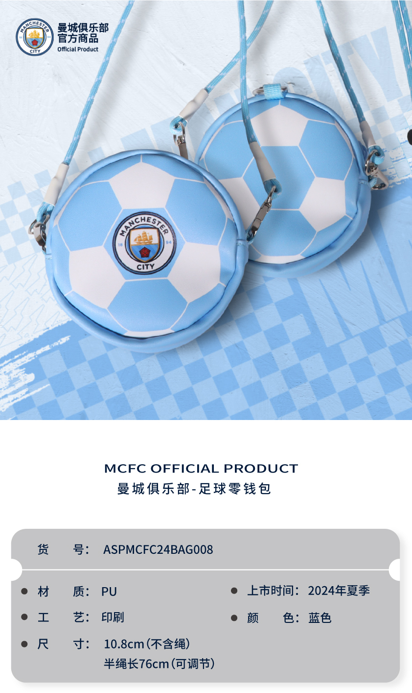 【官方正版】曼城俱乐部|蓝白足球收纳包随身斜跨包女足球迷零钱包