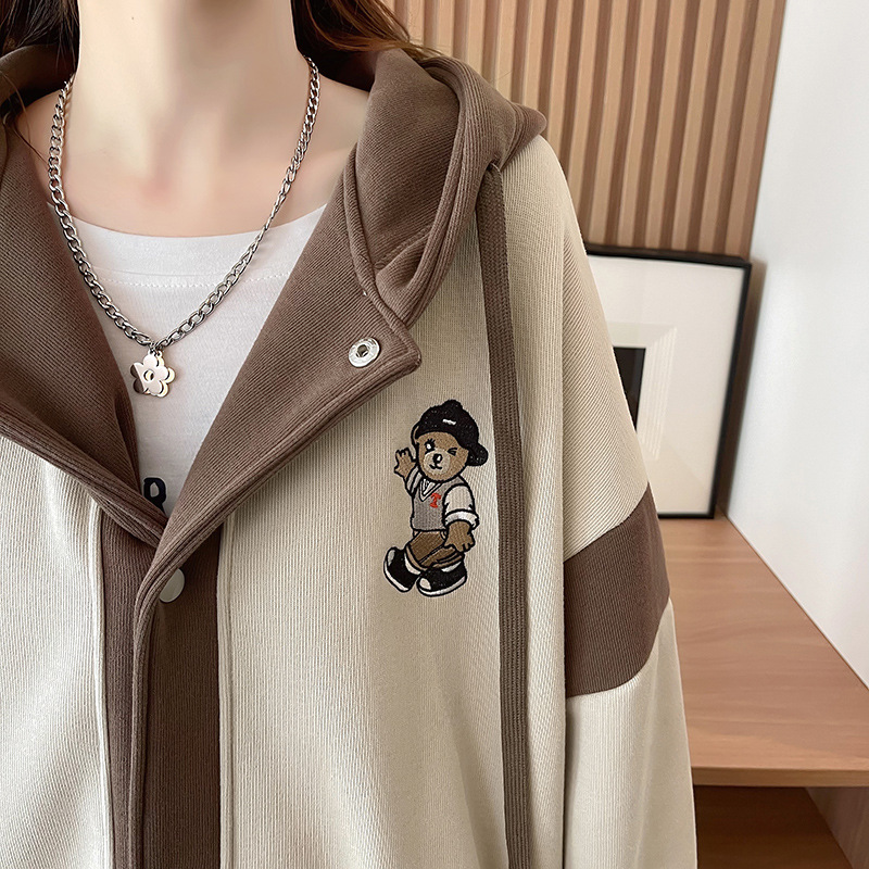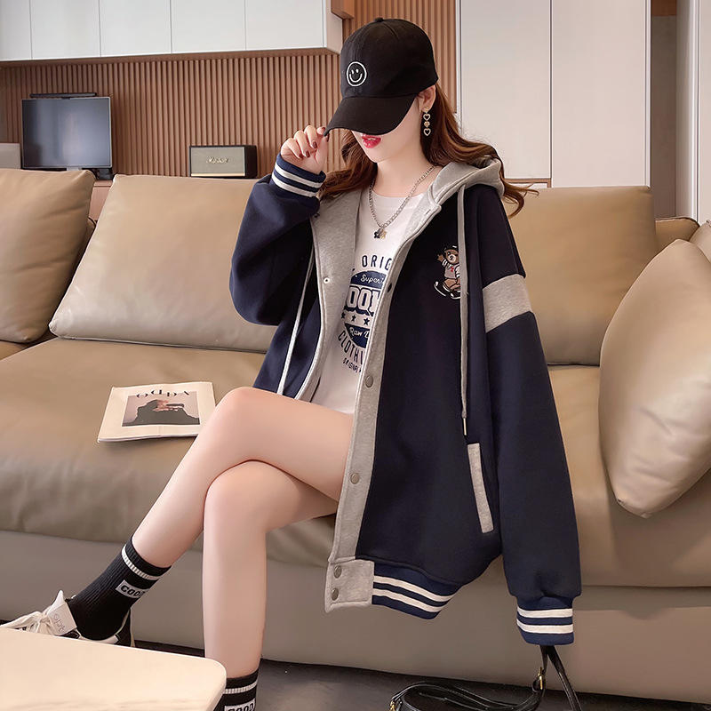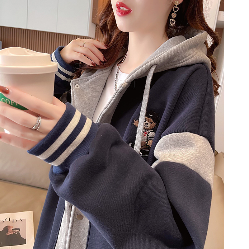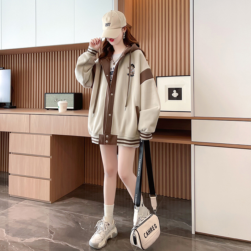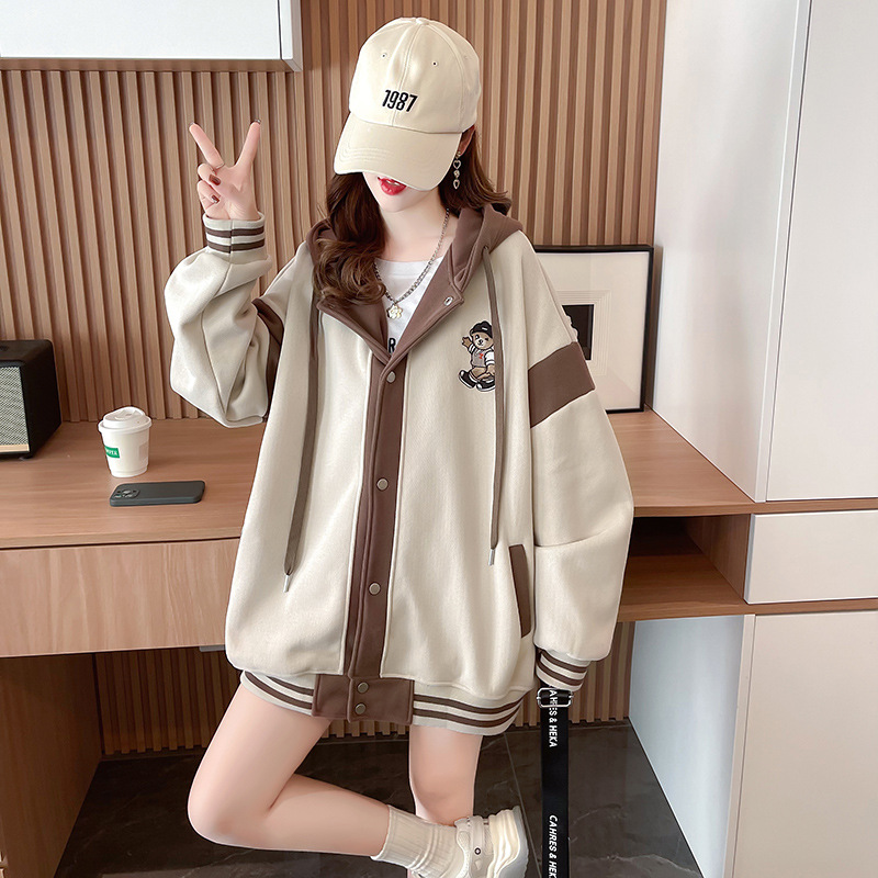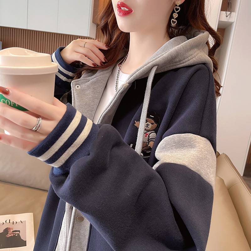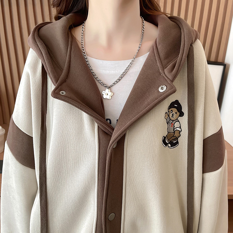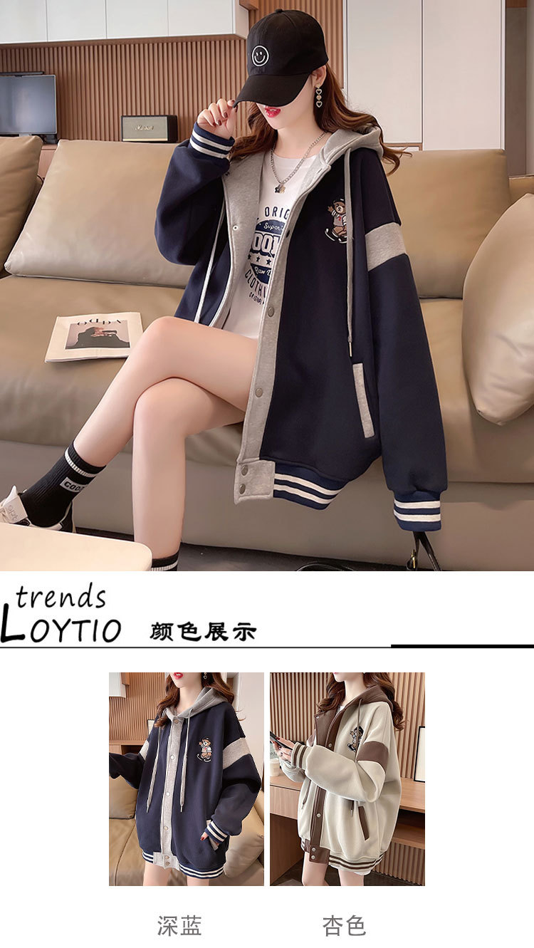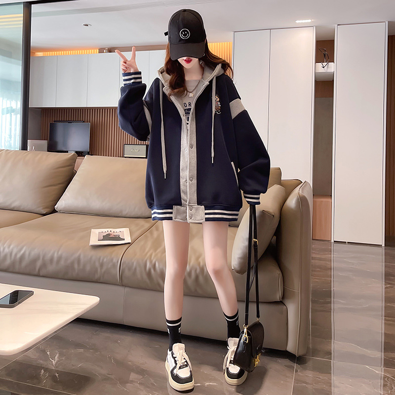 【加绒保暖长袖卫衣外套】秋冬新款 宽松休闲可爱少女外穿上衣 假两件连帽外套