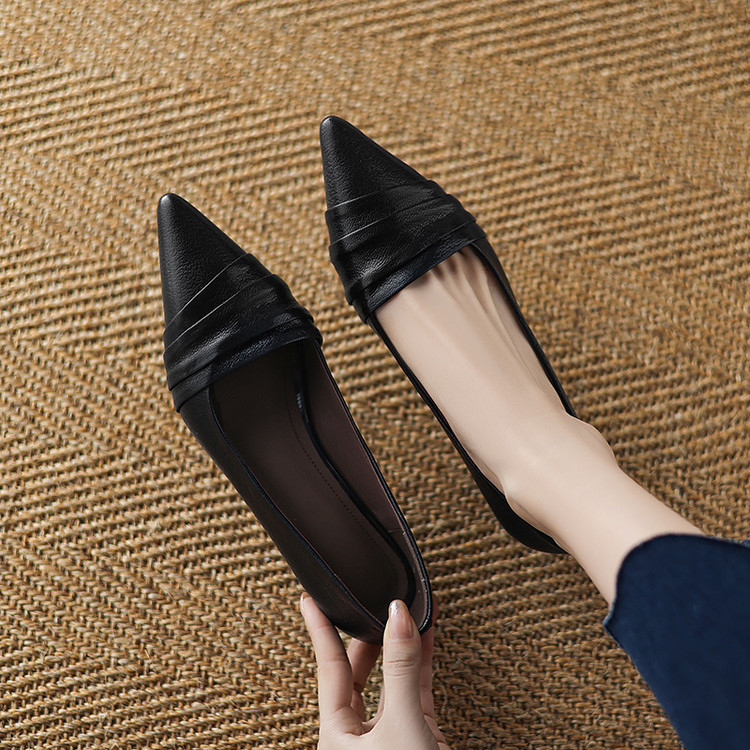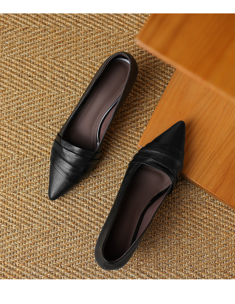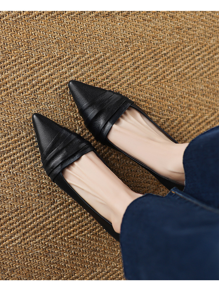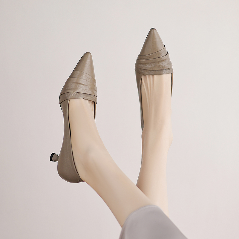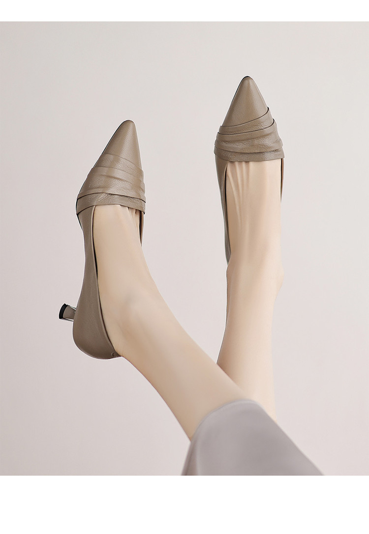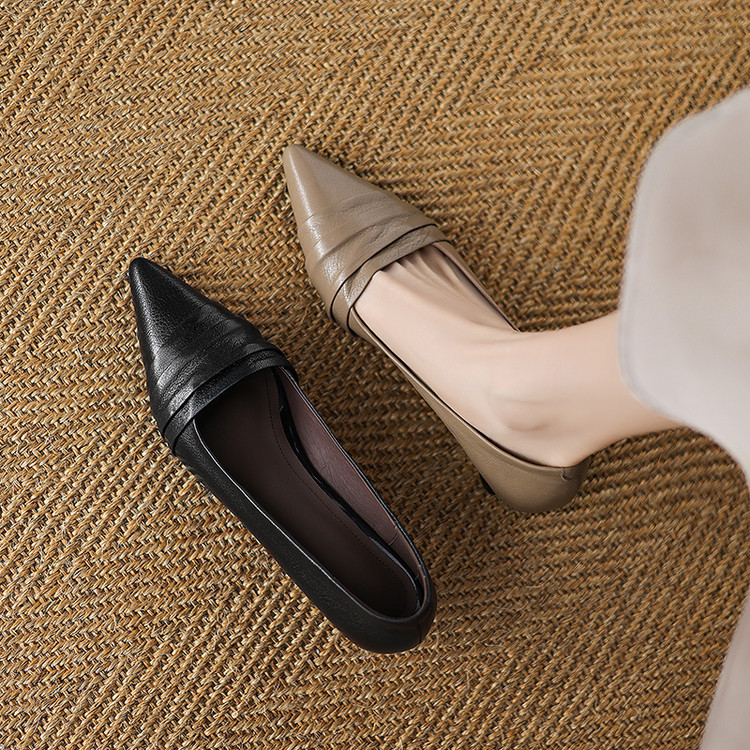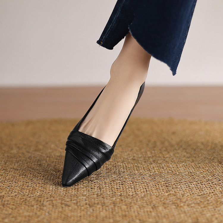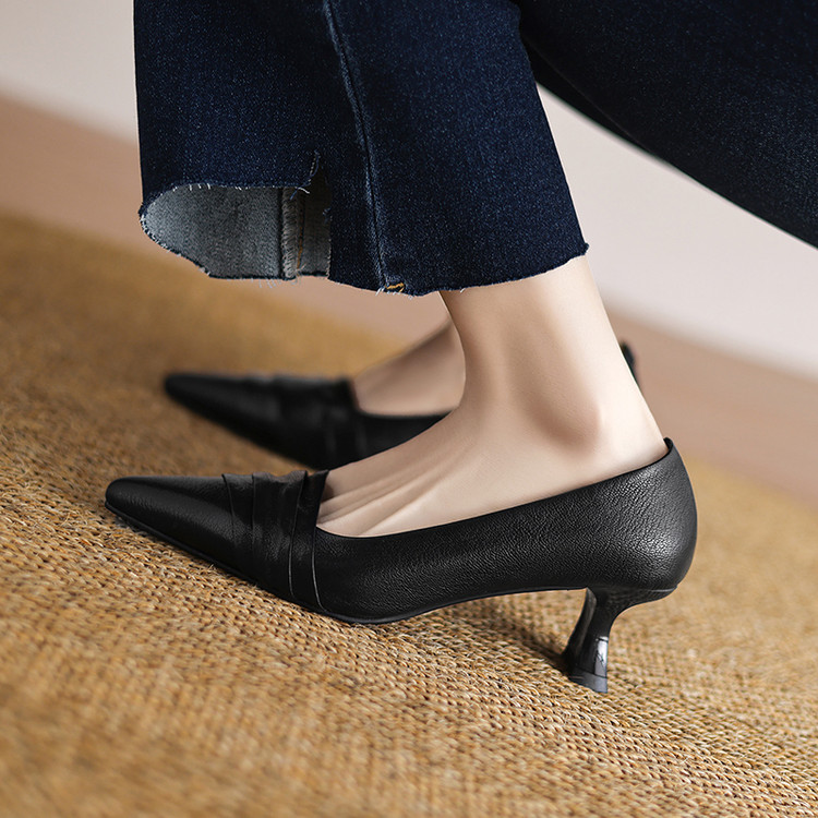 【预售5天】法式浪漫~真皮皱褶粗跟浅口单鞋气质百搭OL高跟鞋女真皮JLY&18-593