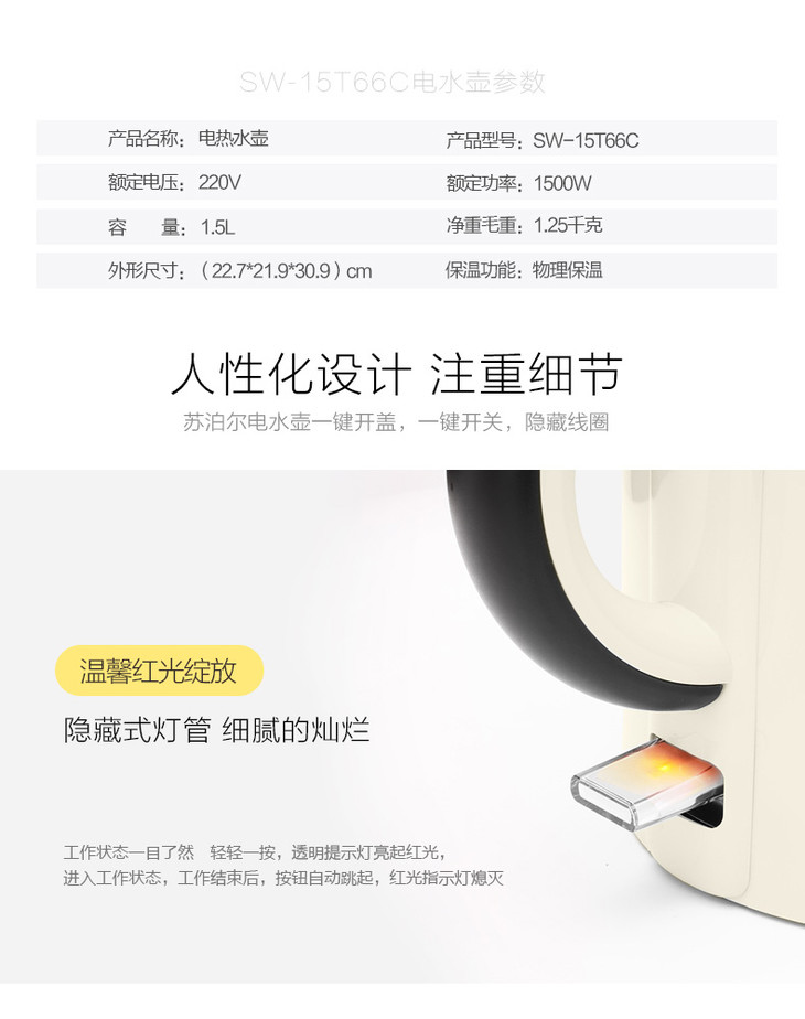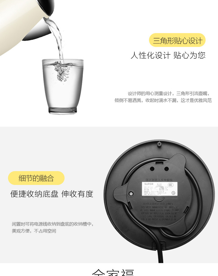 【积分兑换】苏泊尔电热水壶304不锈钢