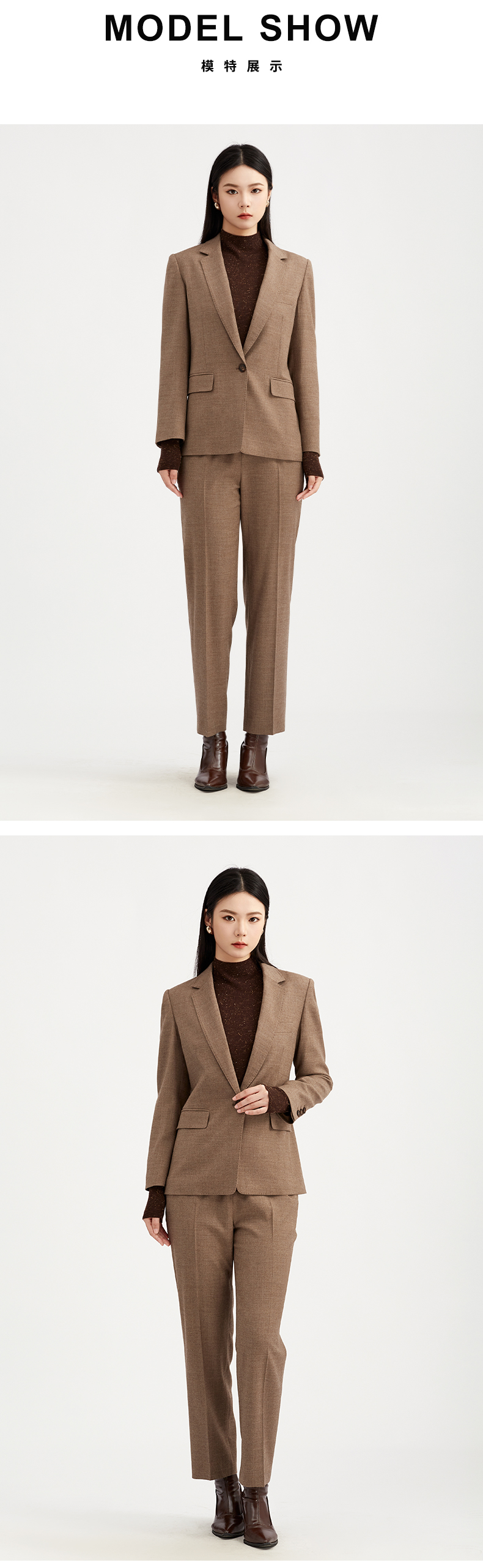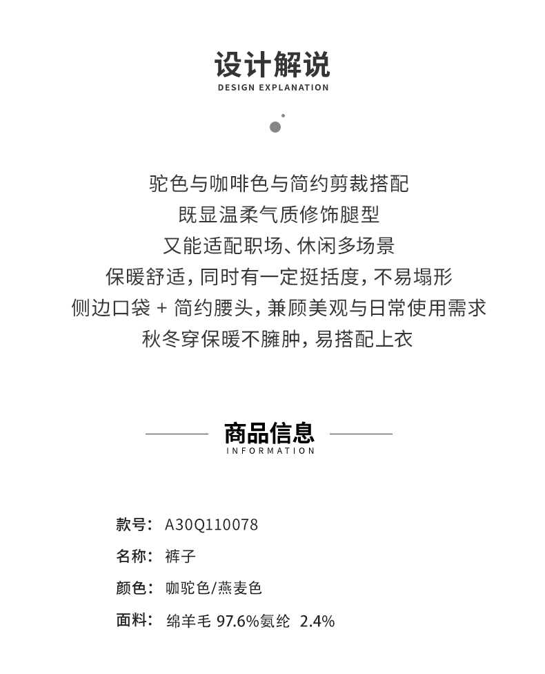 【商场同款】阿菁娜冬季新款高羊毛含量西裤垂顺挺括双效显瘦立体剪裁零束缚轻商务通勤A30Q110078