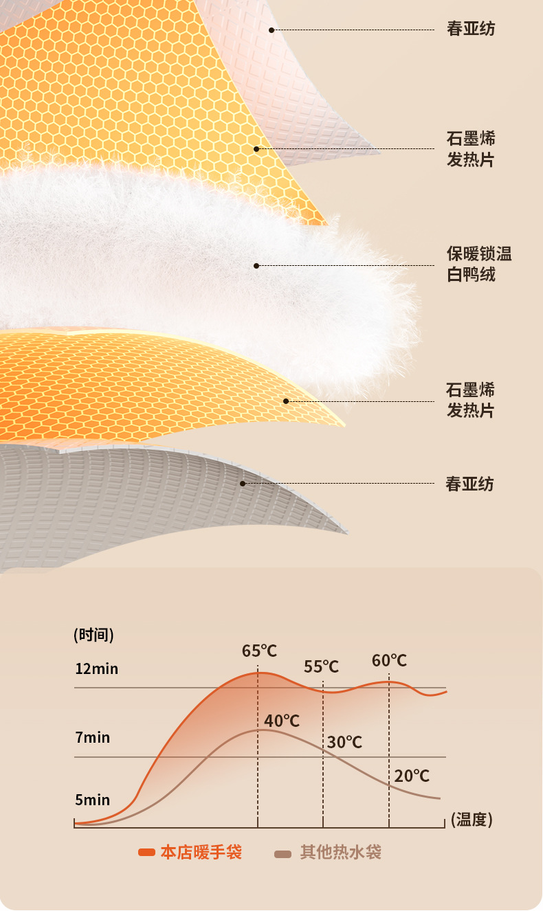 【一袋多用!羽绒暖手袋】USB石墨烯防爆充电式无水热水袋神器暖手套暖宝宝随身便携,三档智能控温 远红外热敷。ry
