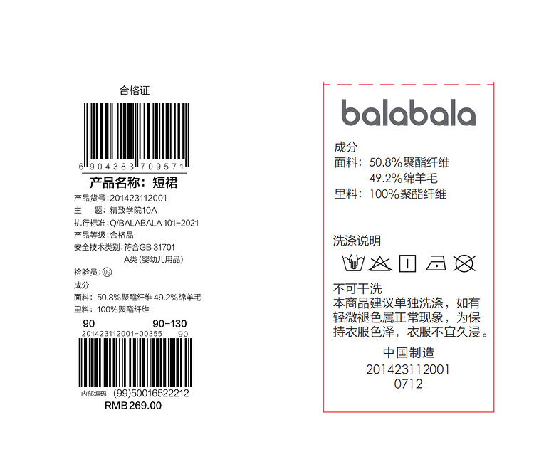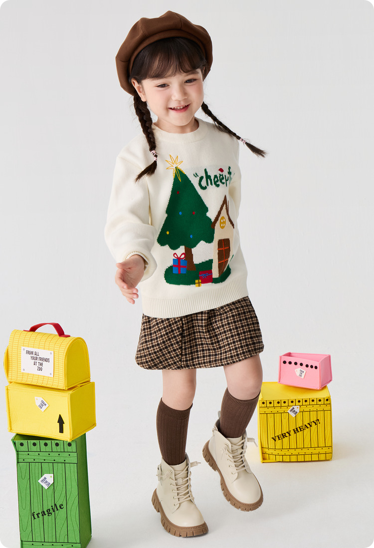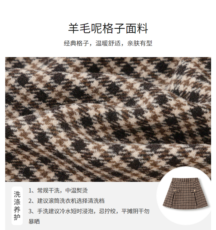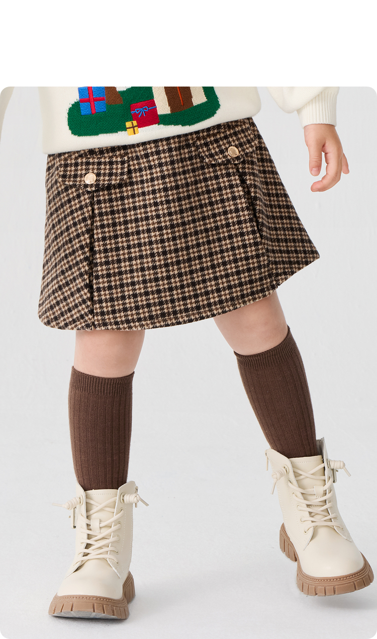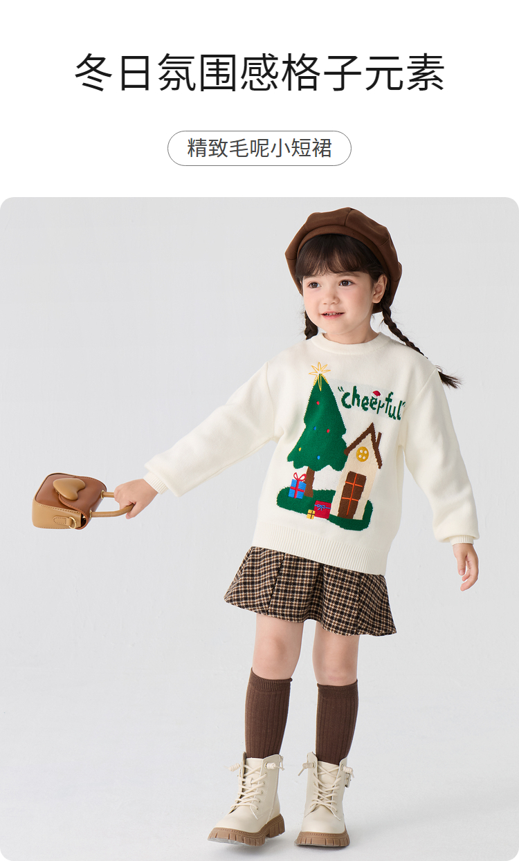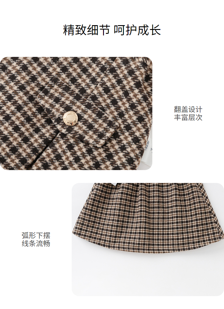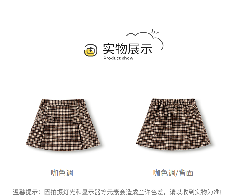 巴拉巴拉童装女童裙子儿童毛呢格子裙秋冬复古美拉德短裙洋气时尚