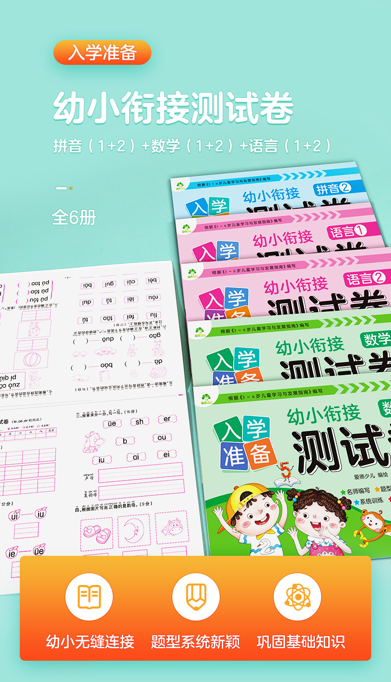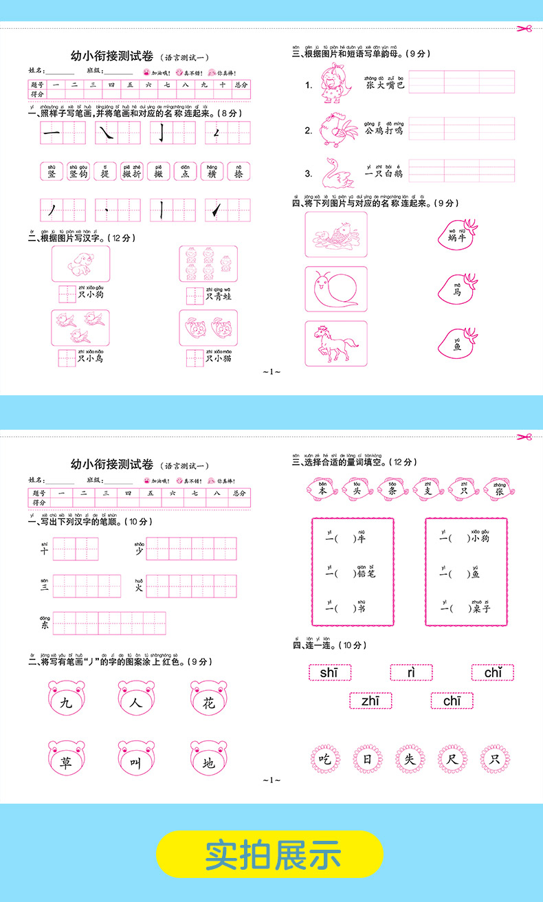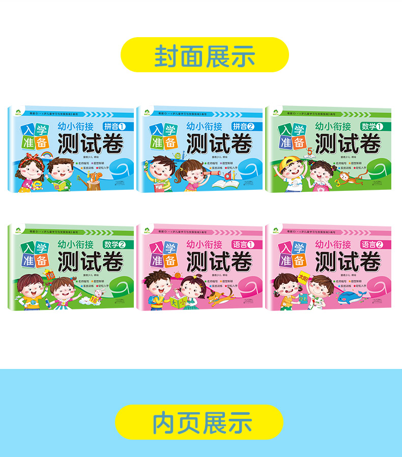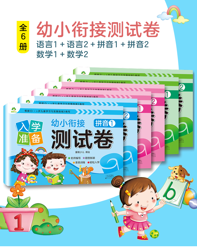 幼小衔接入学准备测试卷全6套专项训练拼音语言数学启蒙练习册一日一练幼儿园升一年级测试卷专项综合训练幼升小必备知识点