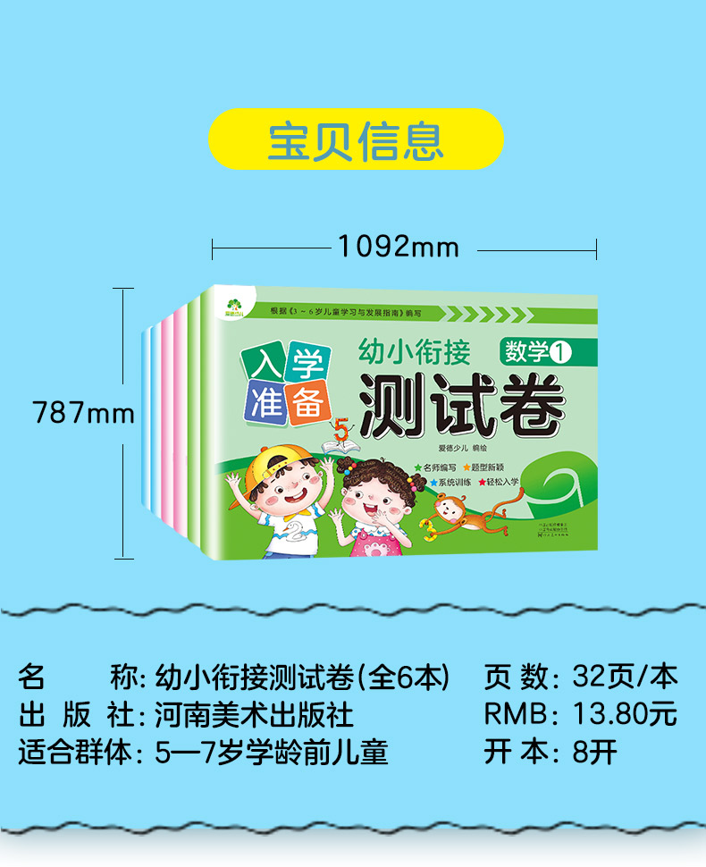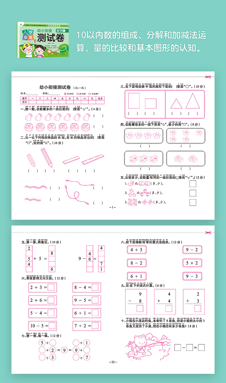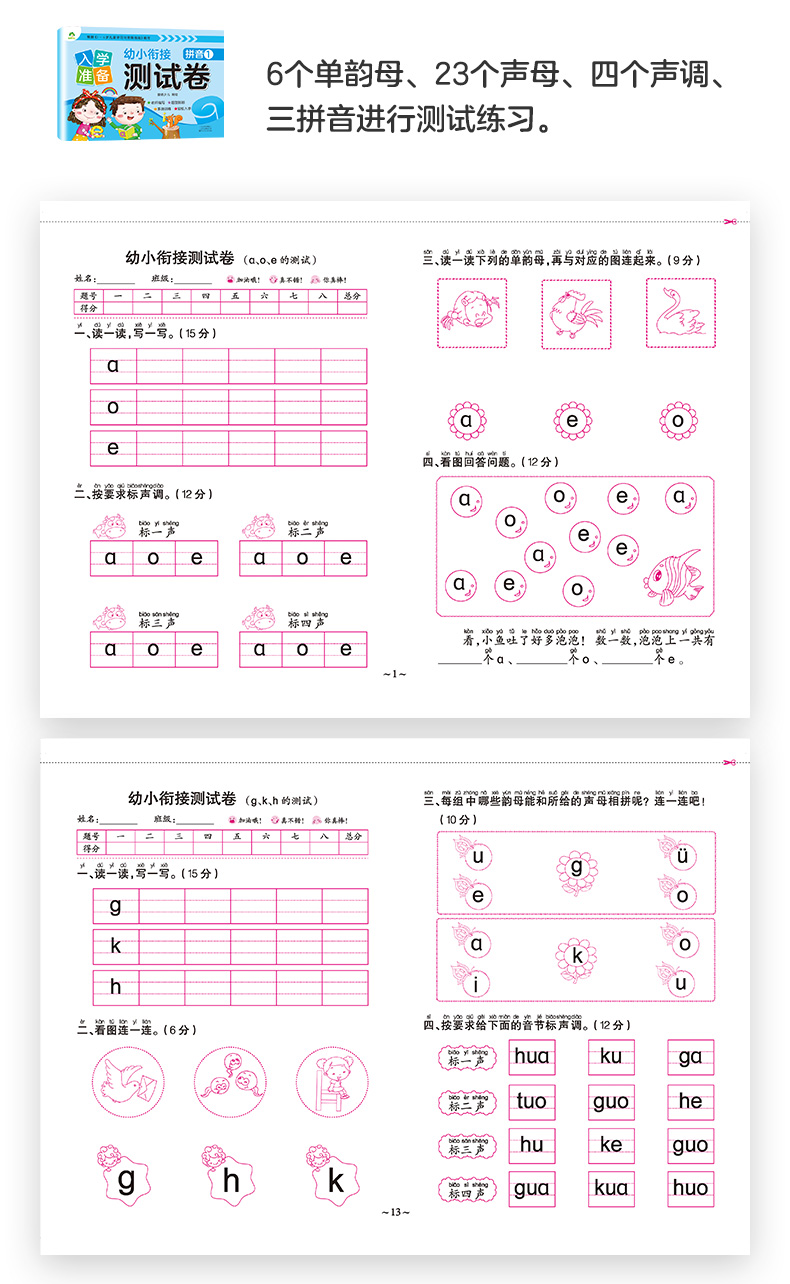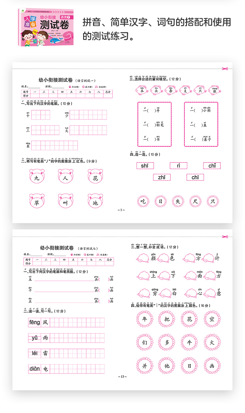 幼小衔接入学准备测试卷全6套专项训练拼音语言数学启蒙练习册一日一练幼儿园升一年级测试卷专项综合训练幼升小必备知识点