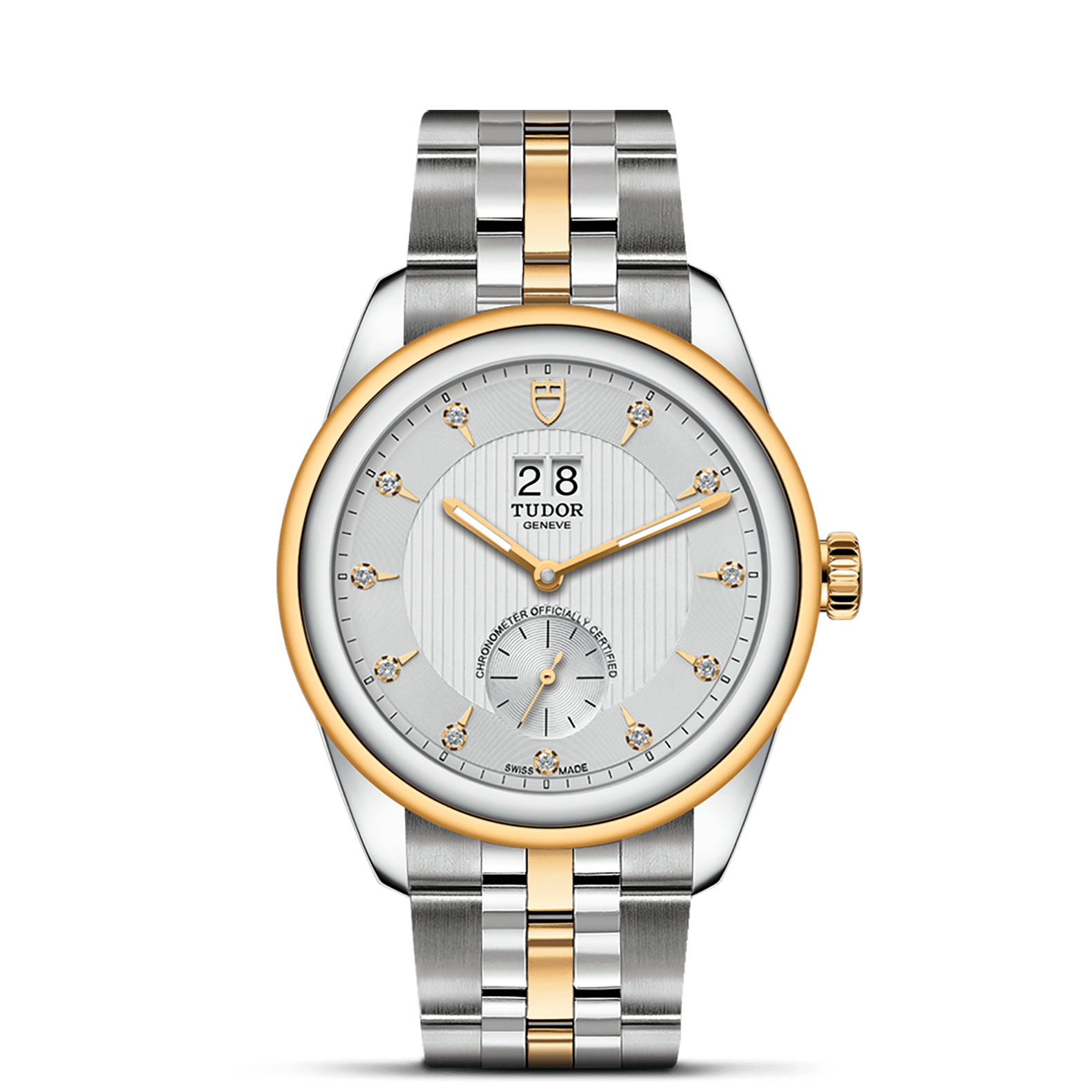 旋入式上链錶冠,饰以帝舵表标志;精钢覆有0.1毫米18K黄金薄层