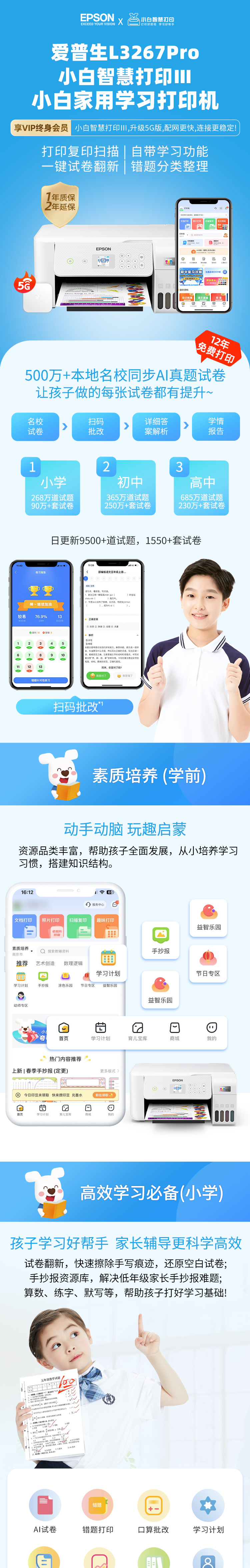爱普生打印机L3267 Pro+升级3代5G盒子小白智慧学习打印机