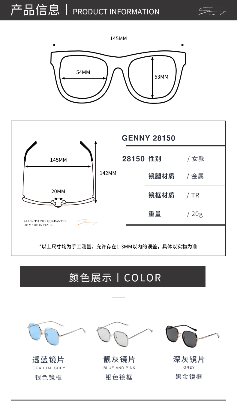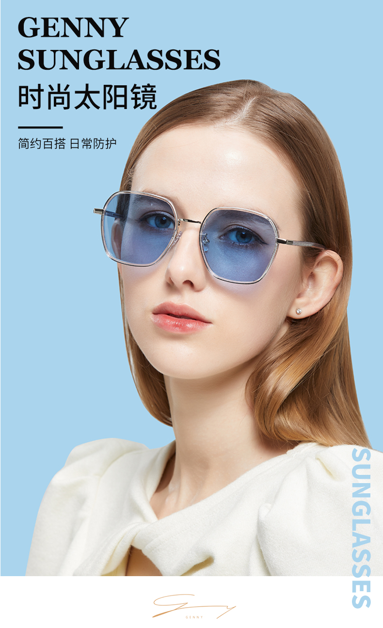 GENNY金属方框太阳镜 买即送男士偏光眼镜