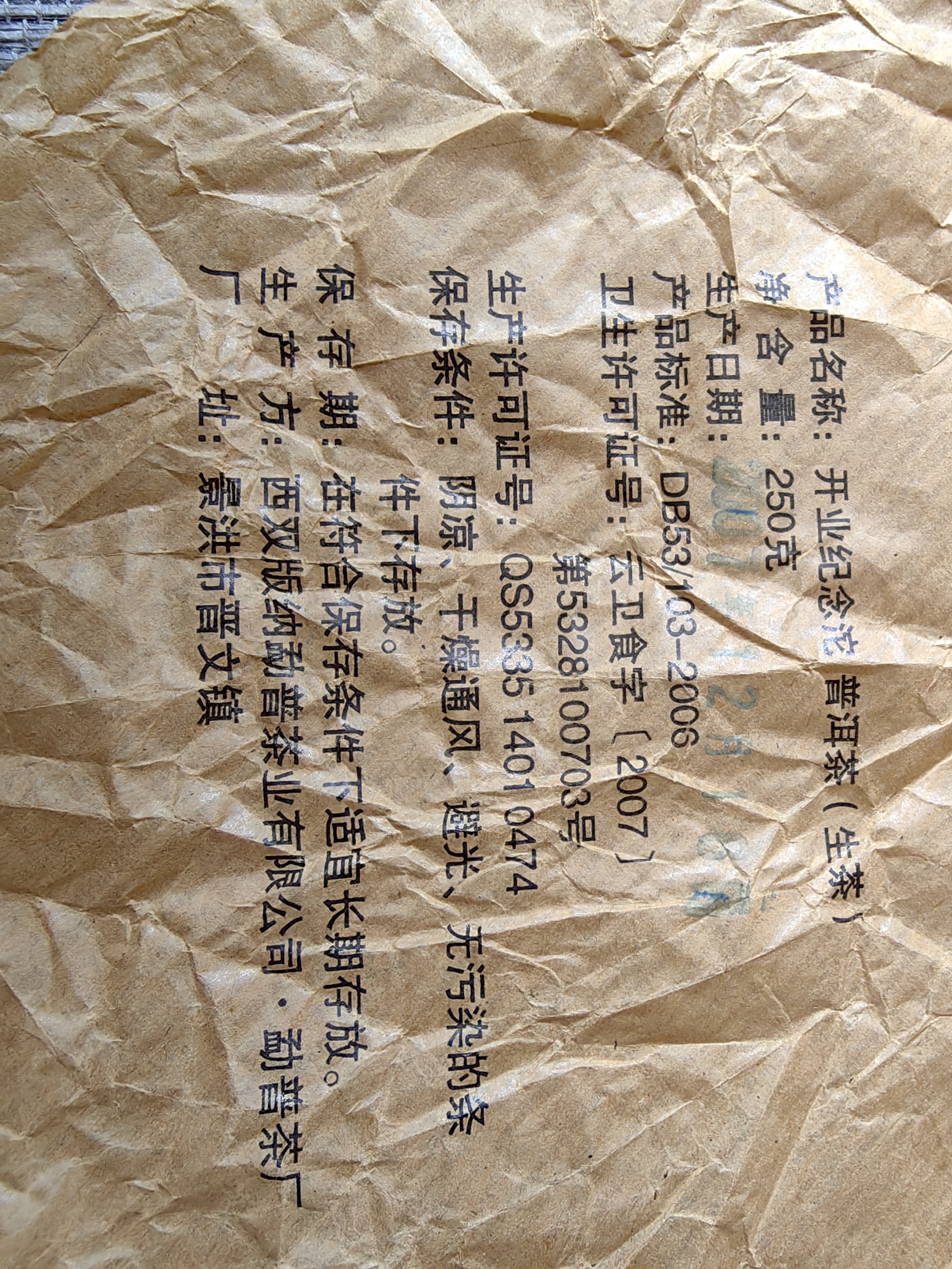 2007年生产,宣哥个人勐海仓库陈化15年老生茶