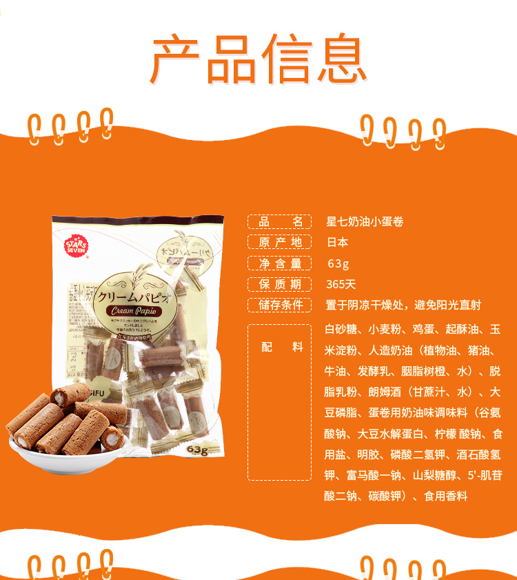 星七牌奶油味夹心小蛋卷63g