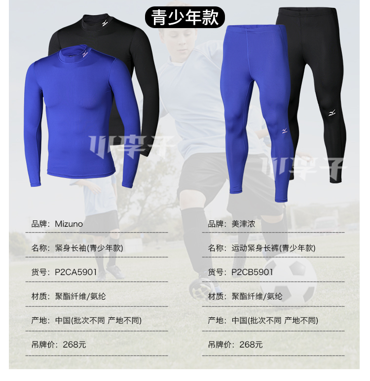 小李子专柜正品MIZUNO美津浓成人青少年紧身衣长袖长裤短裤健身服