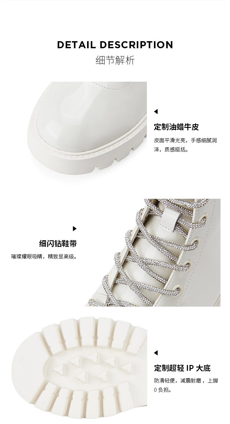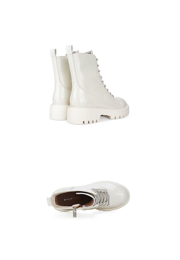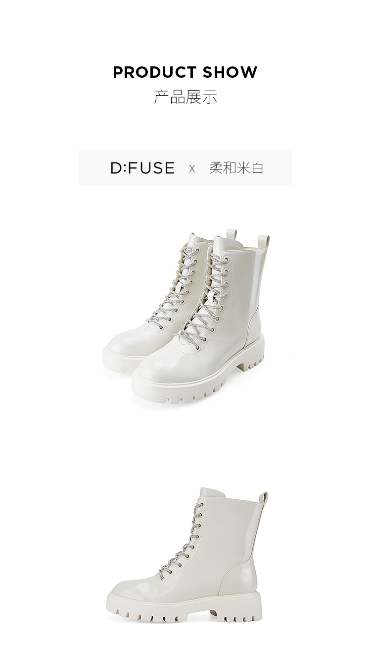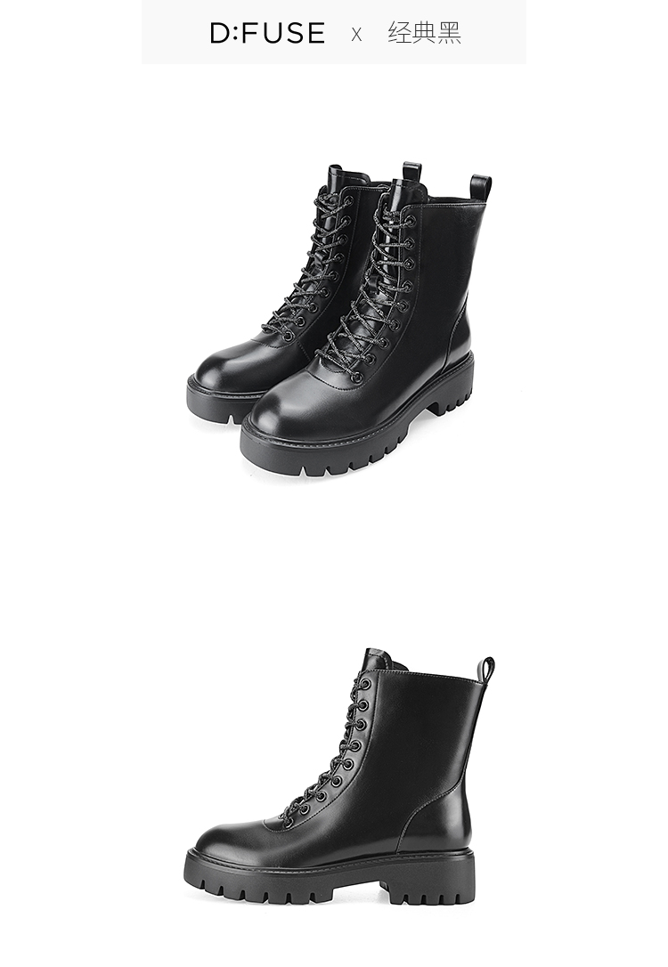 Dfuse迪芙斯冬季新款油皮厚底短靴闪钻系带马丁靴DF34116051