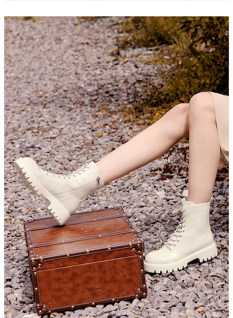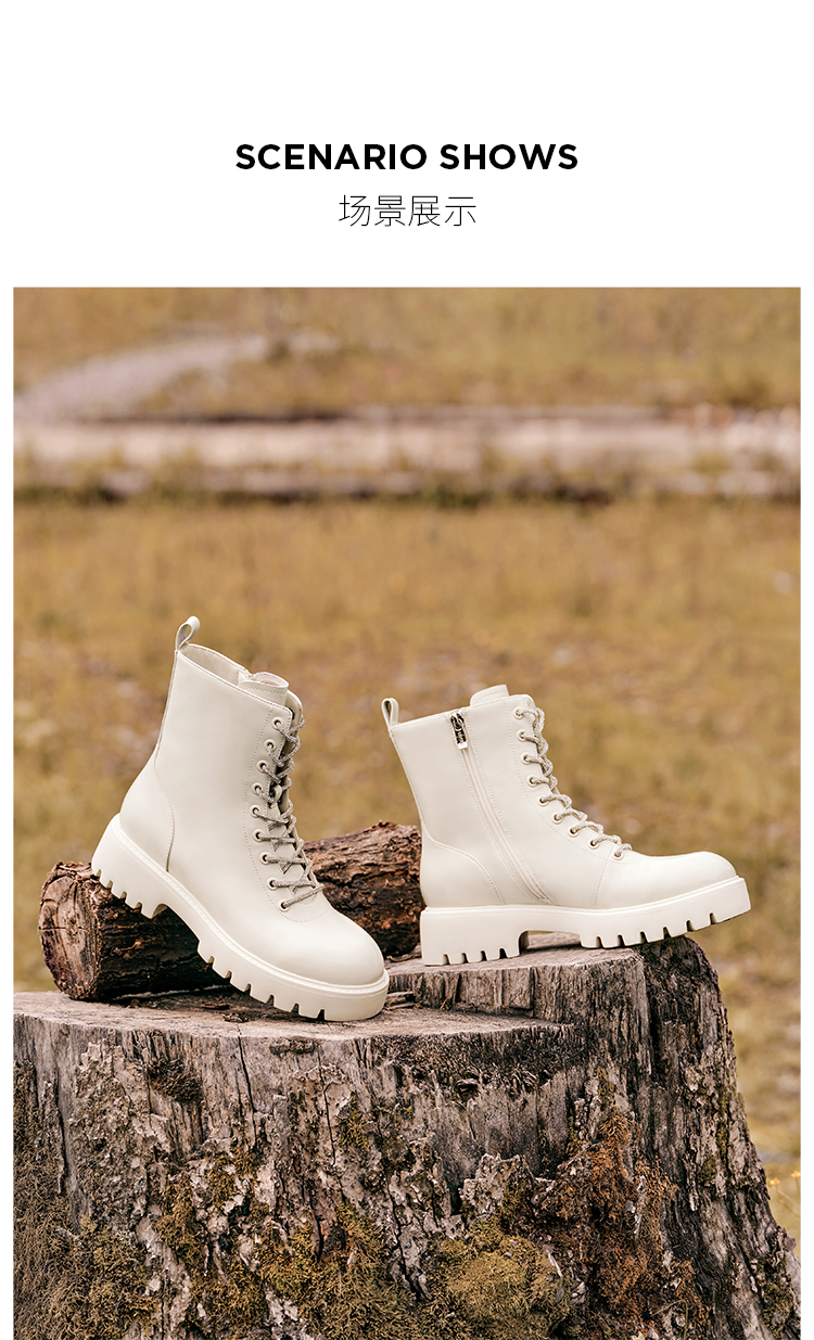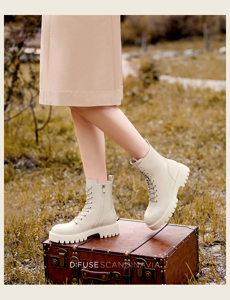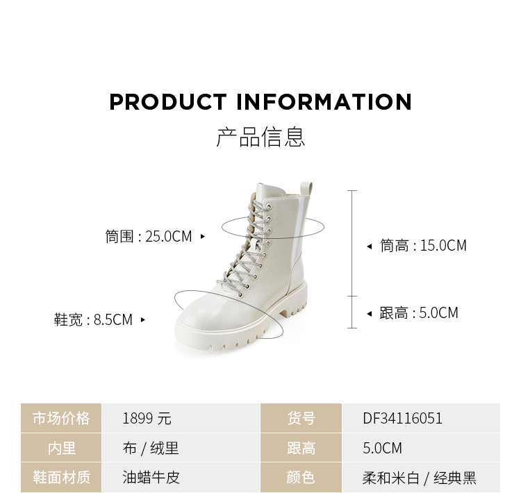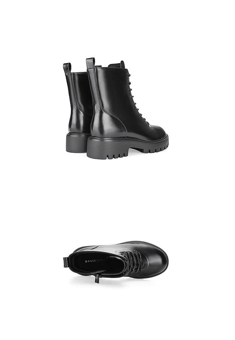 Dfuse迪芙斯冬季新款油皮厚底短靴闪钻系带马丁靴DF34116051