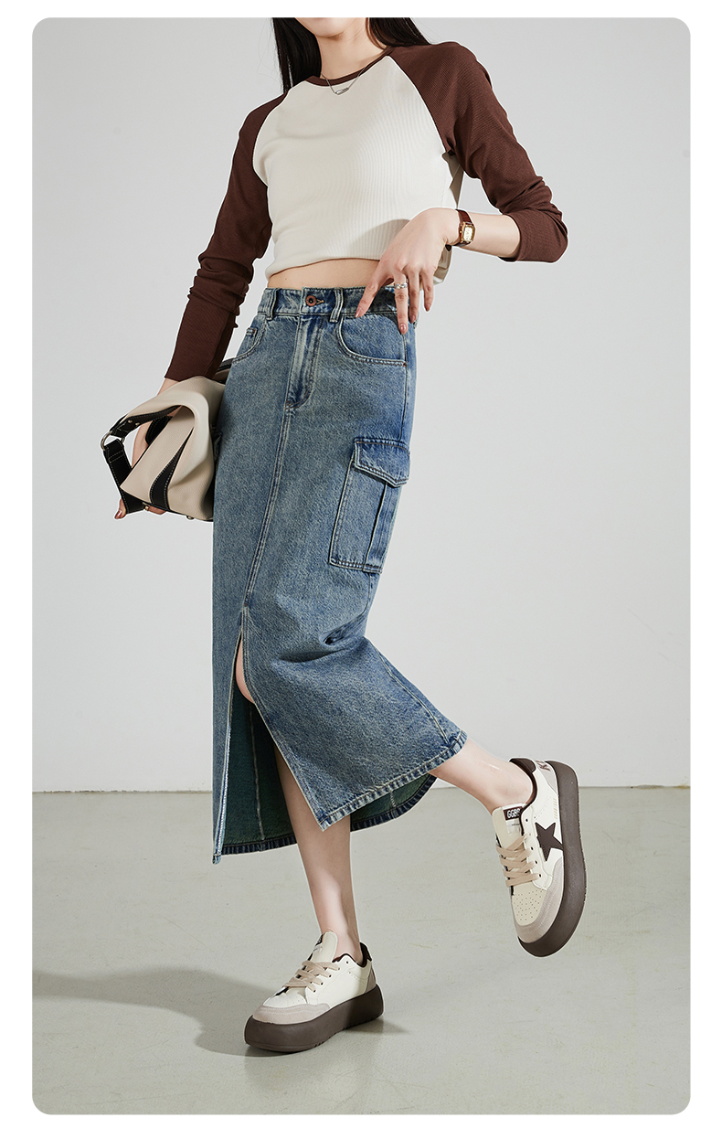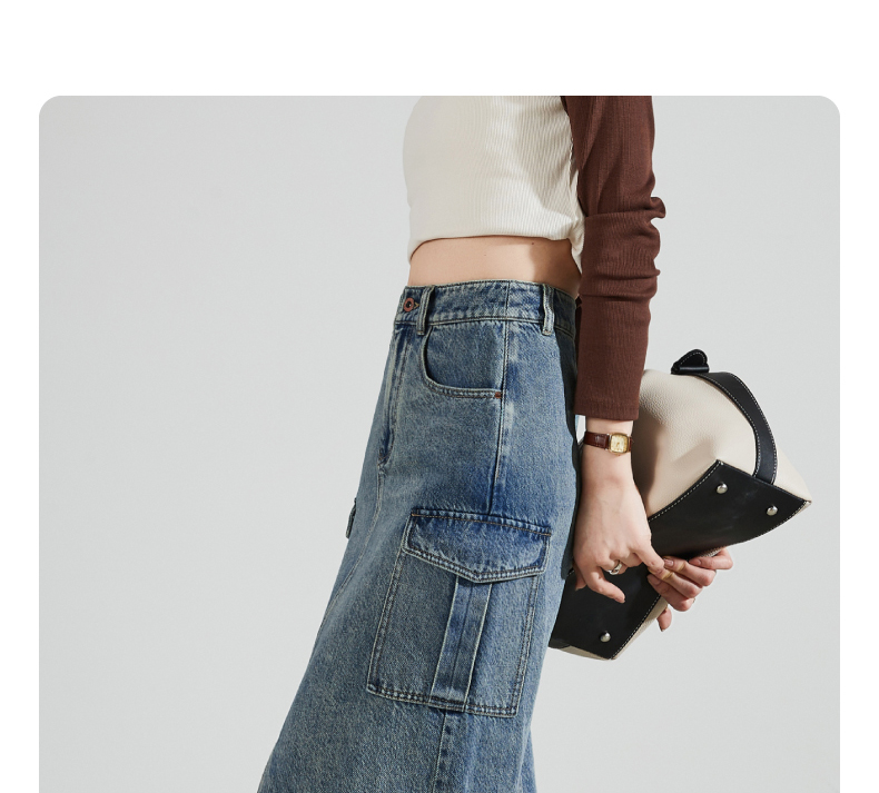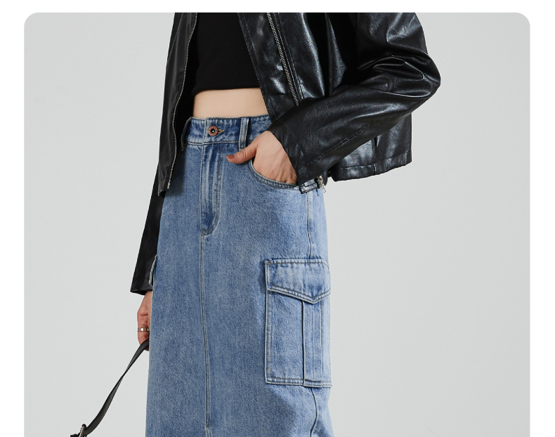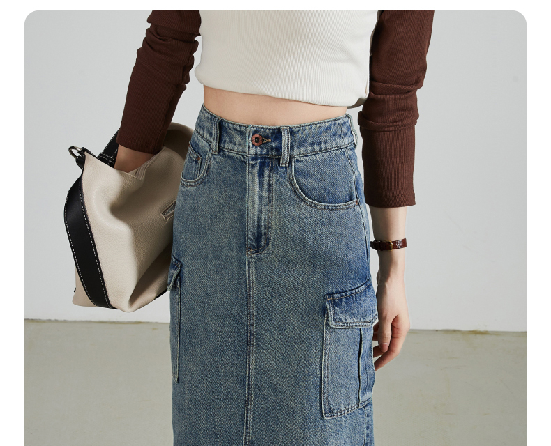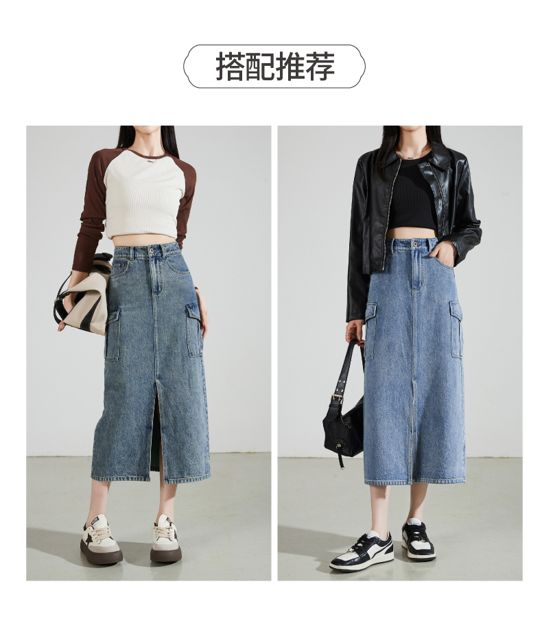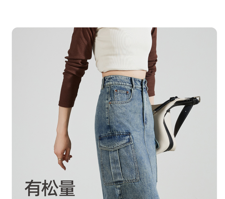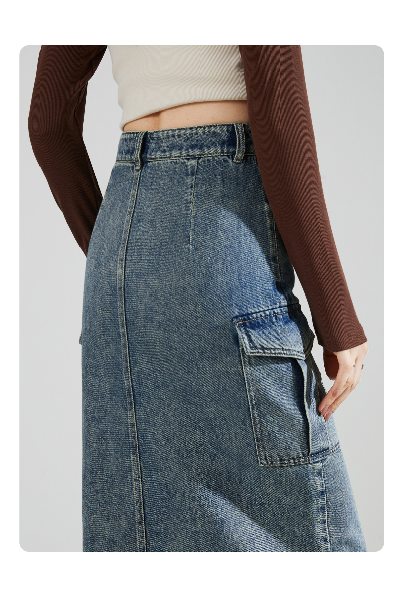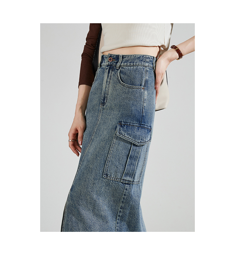 【亏本售!牛仔半身裙】逸阳时尚显高显瘦大口袋包臀半身长裙子0893