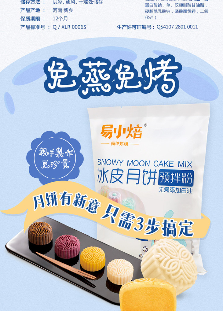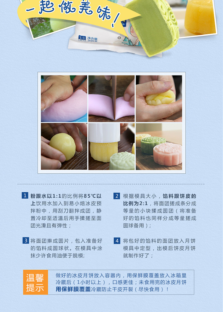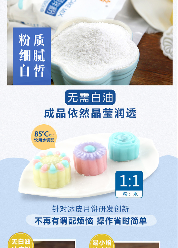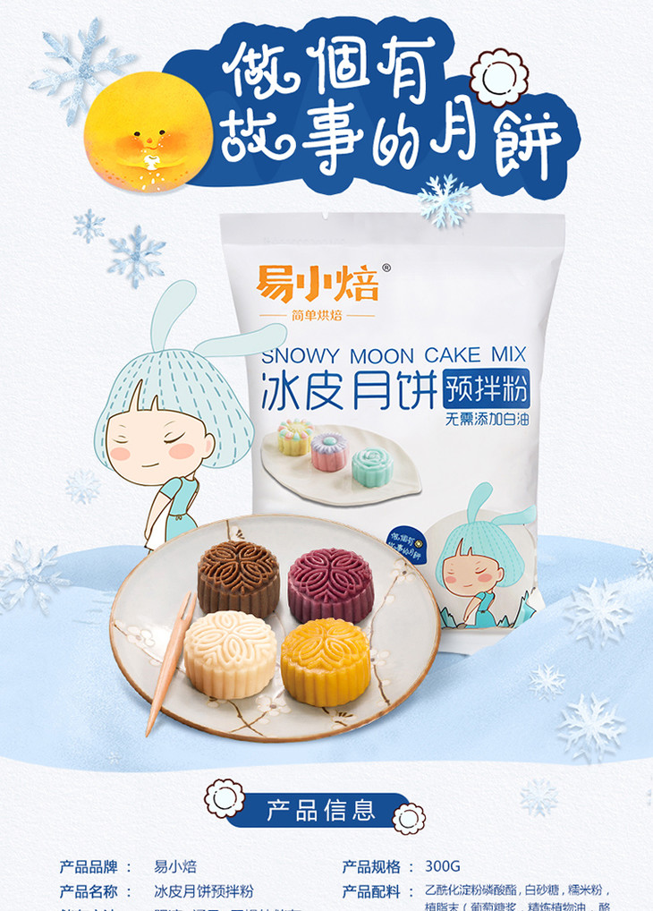 易小焙冰皮月饼粉300g 制作材料套装 自制 月饼预拌粉免蒸