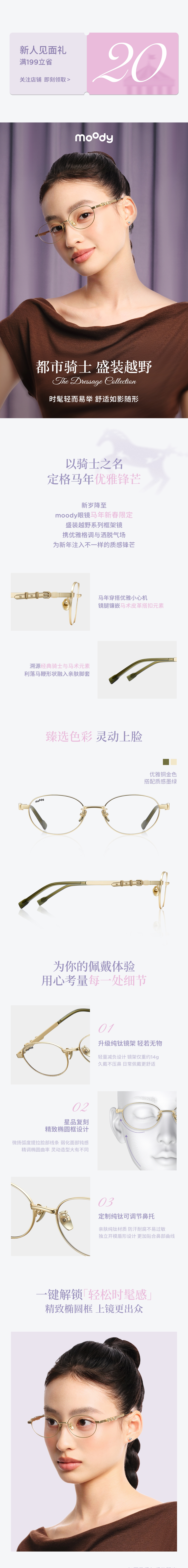 moody眼镜椭圆框钛架超轻清冷感cici金眼镜马术系列