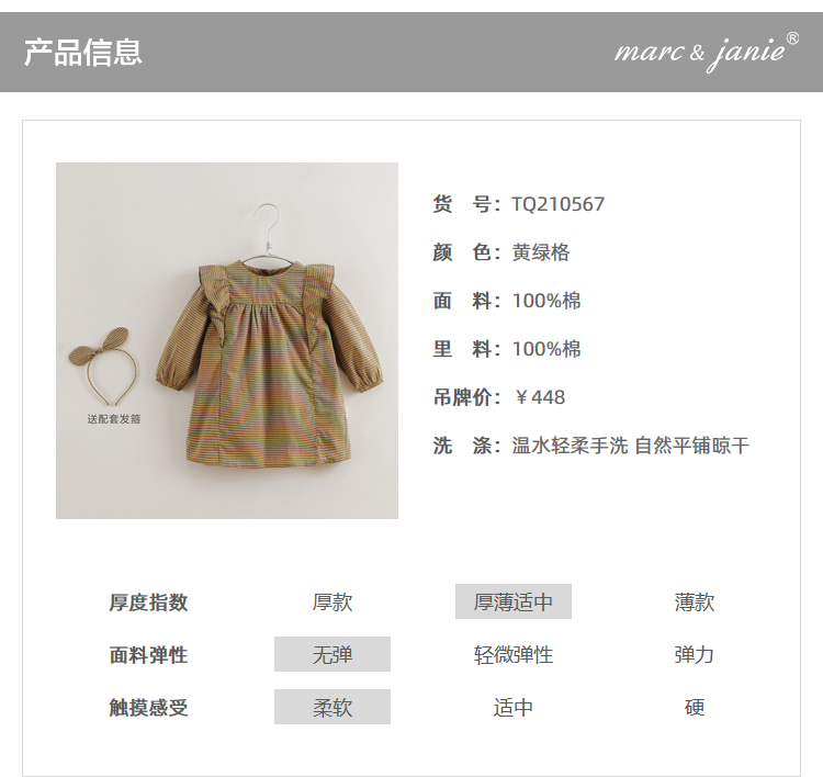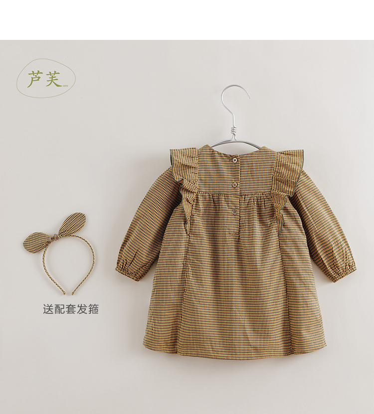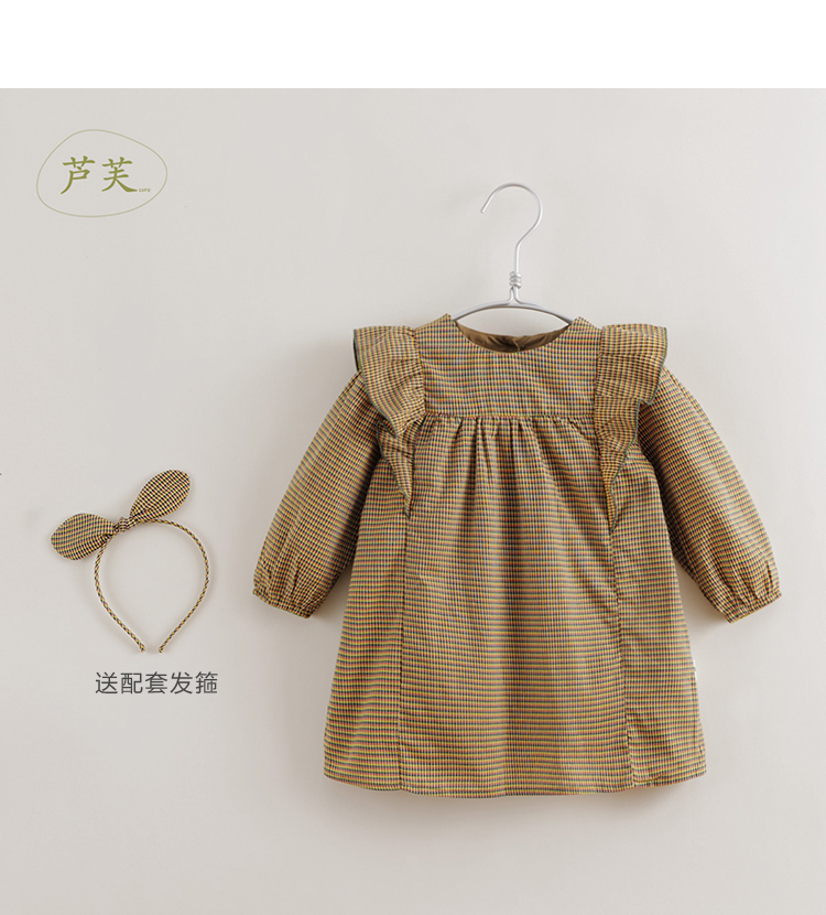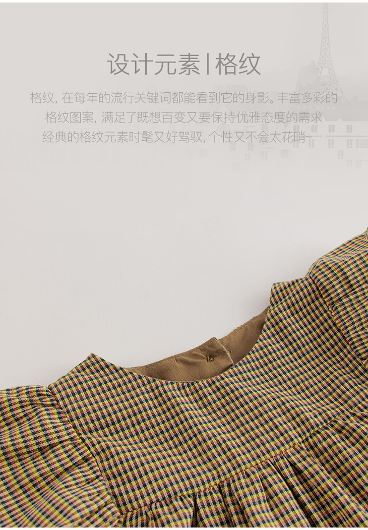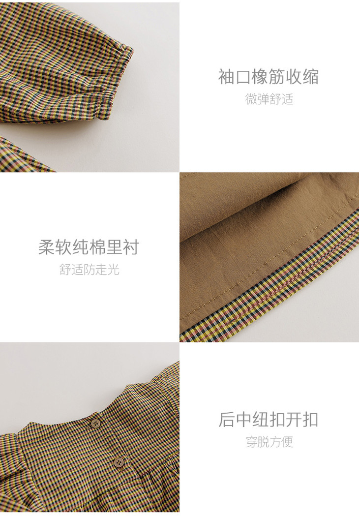 【马克珍妮 芦芙】春装新款 女童纯棉格子长袖连衣裙210567