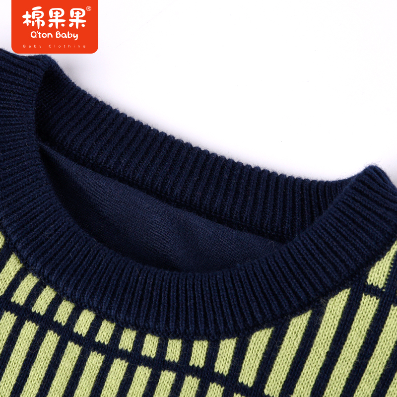 提花圆领套头棉线衫