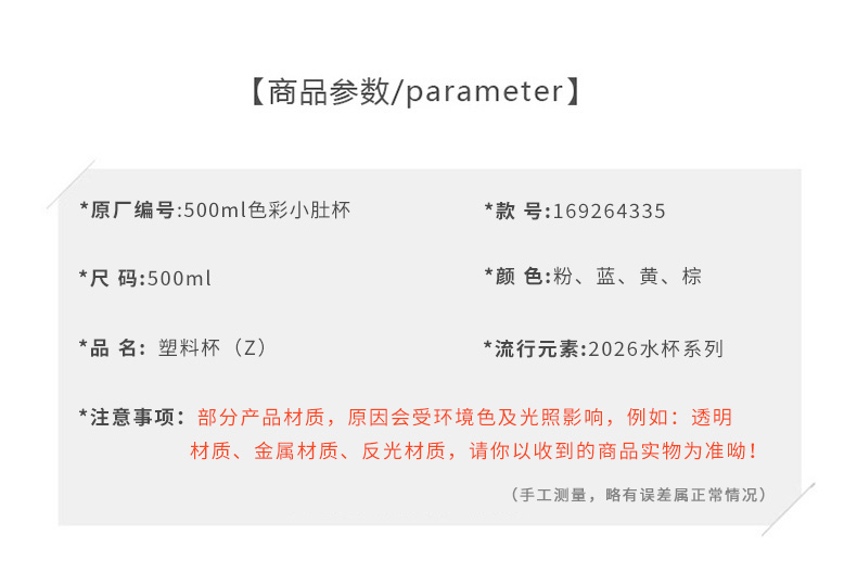 500ml色彩小肚杯塑料杯-纪念日百货门店同款169264335