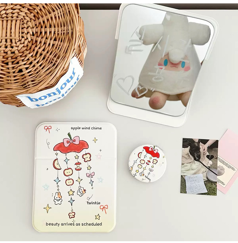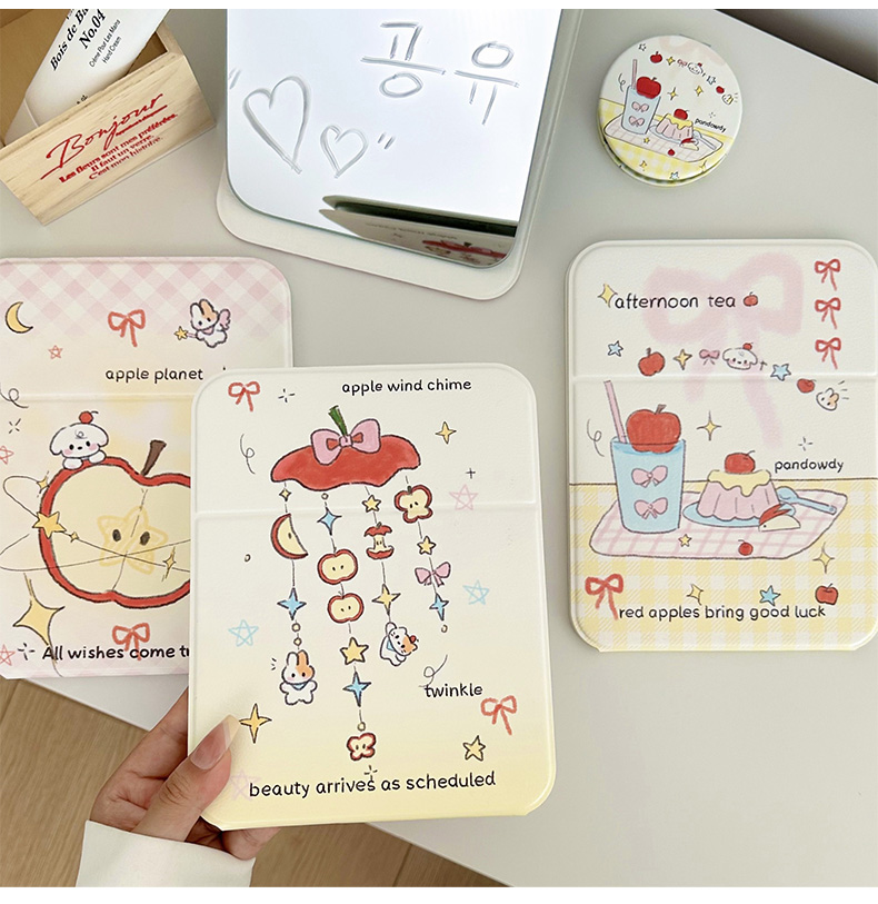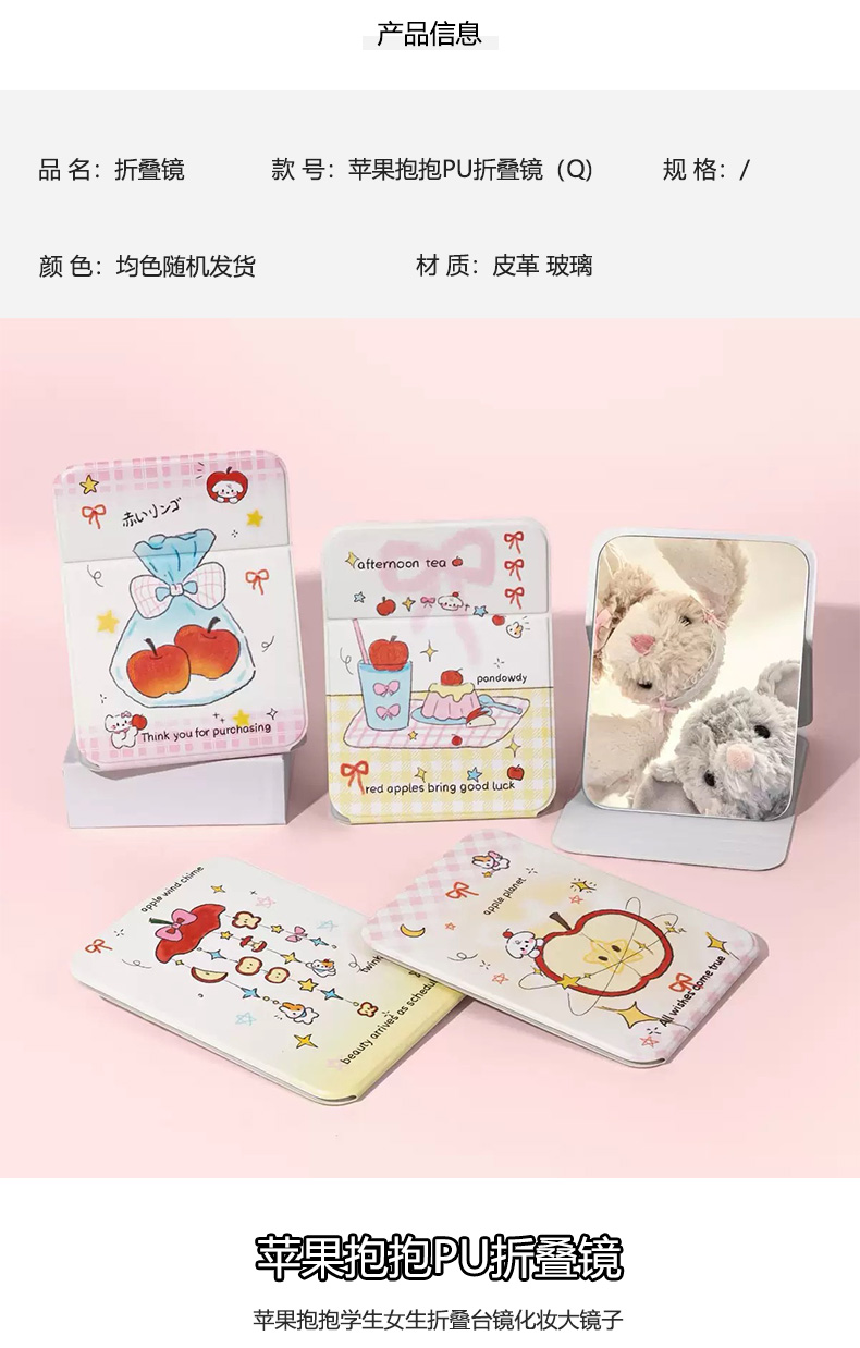 苹果抱抱PU学生女生折叠台镜化妆大镜子折叠镜-纪念日百货门店同款167843931