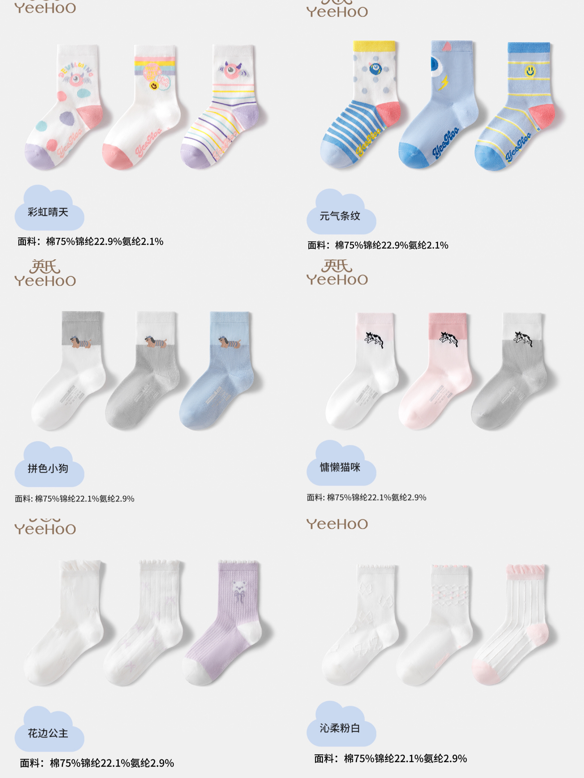 【英氏VeeHoO卡通棉袜】品牌直发!每39到手3双英氏7A抑菌袜!春日必备穿搭CP,简简单单提升穿搭亮点!