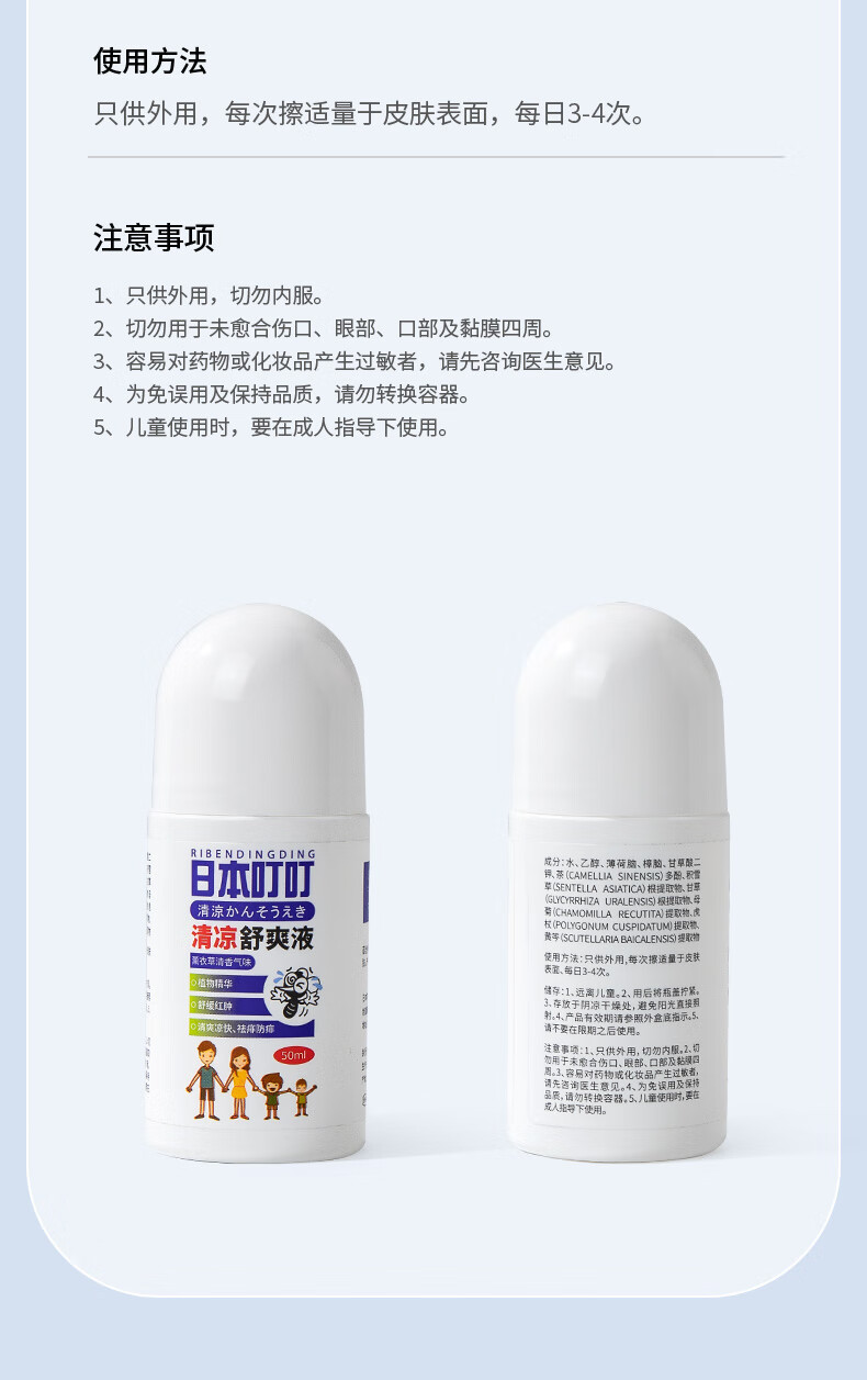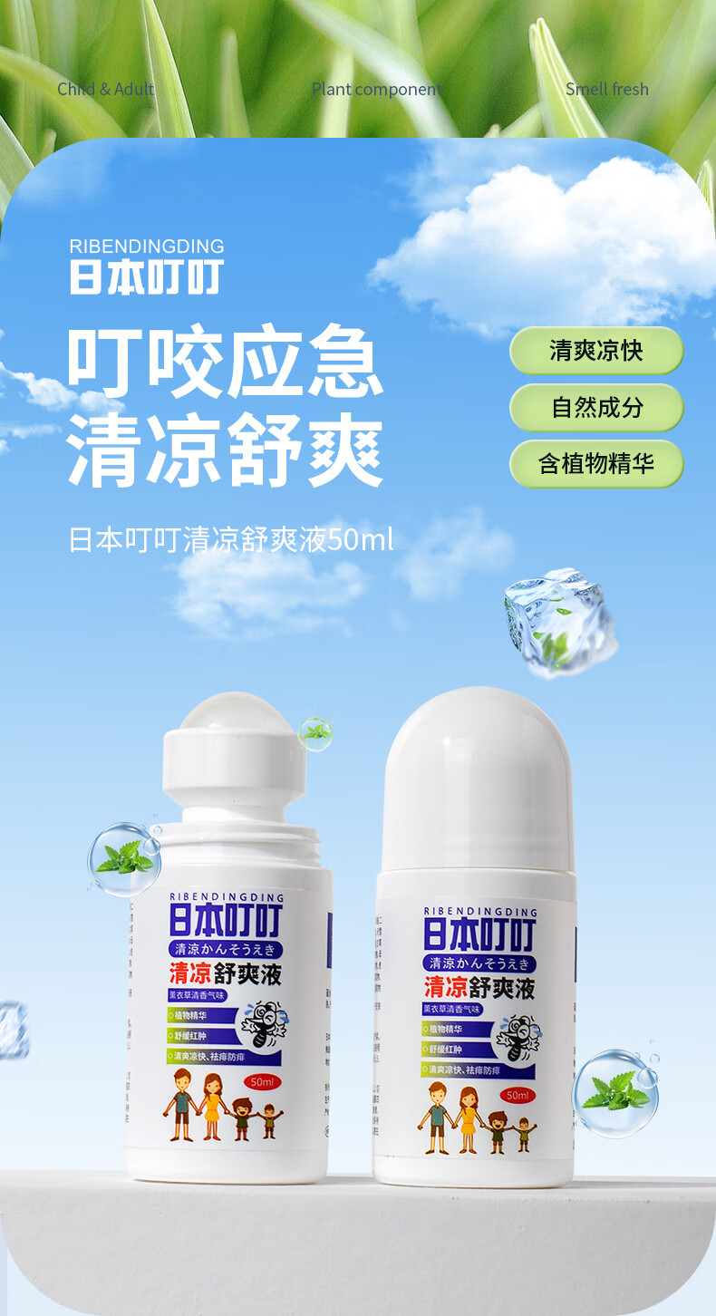 RIBENDINGDING日本叮叮清凉止痒液防驱叮舒缓液蚊虫叮咬消包走珠婴儿宝宝50ml