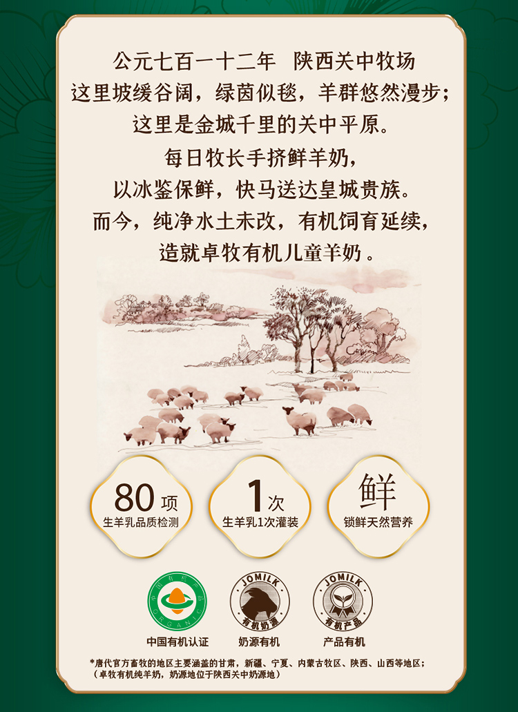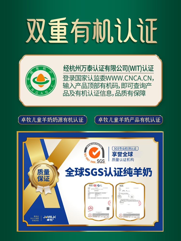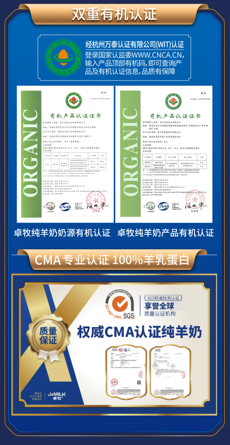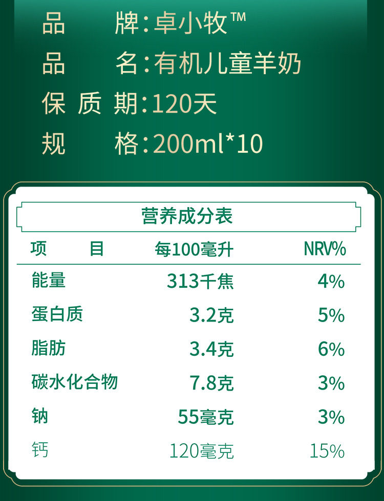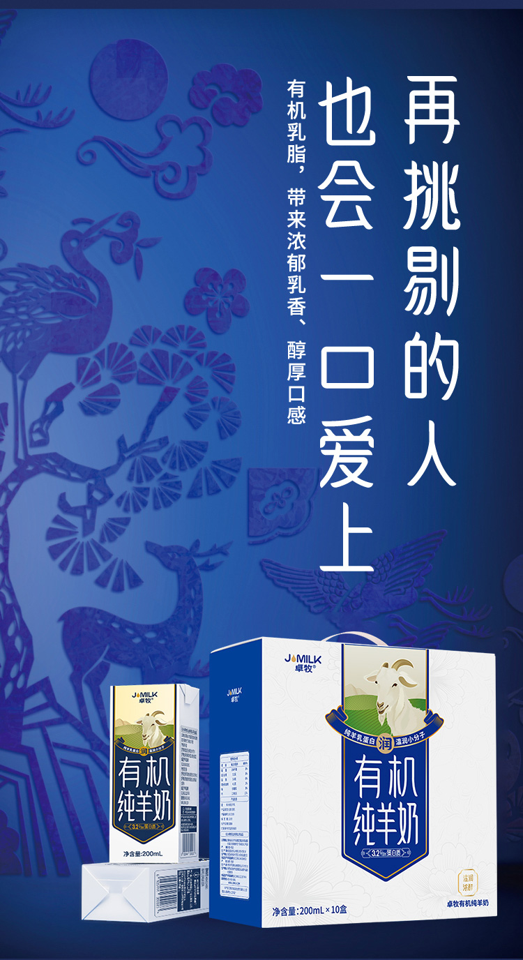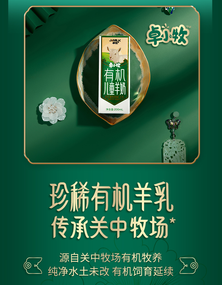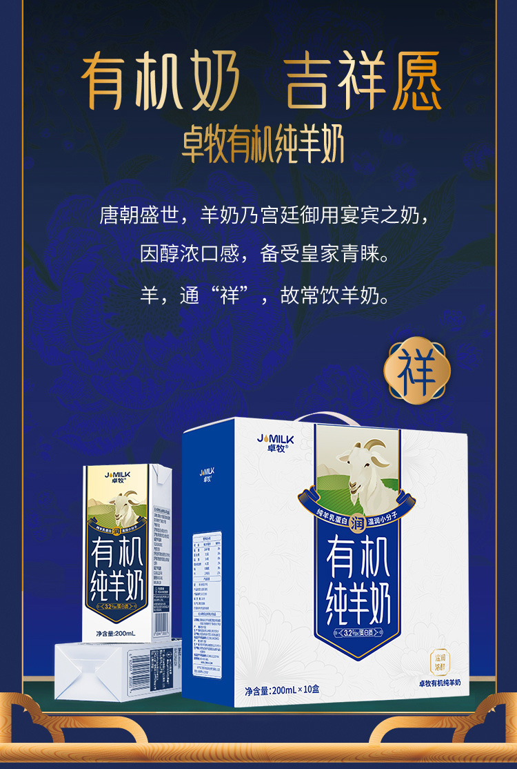卓牧(Jomilk) 卓牧有机纯羊奶 天然A2羊乳蛋白 双有机认证中老年人成人儿童200ml盒*10盒装