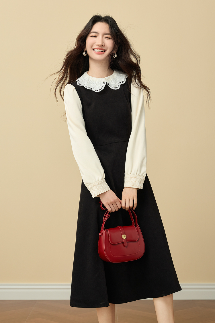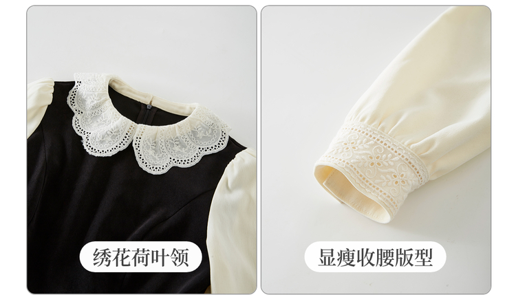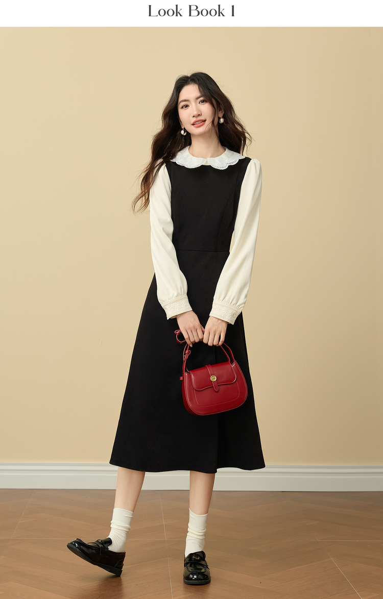 【12/03新品】熙世界法式通勤假两件磨毛连衣裙女秋冬气质高级感娃娃领长袖裙子
