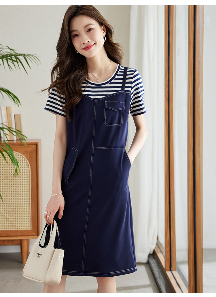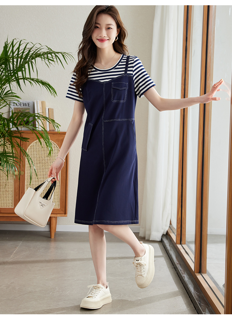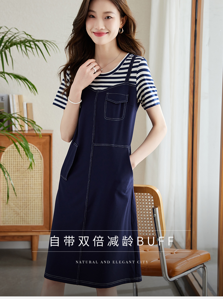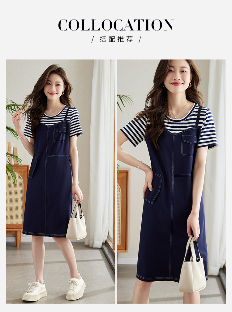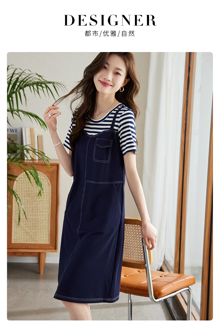 【专属特价】熙世界假两件拼接吊带牛仔连衣裙女2025夏季新款港风时尚显瘦裙子
