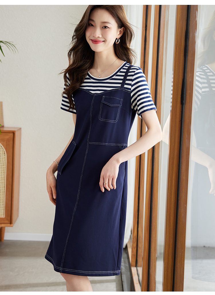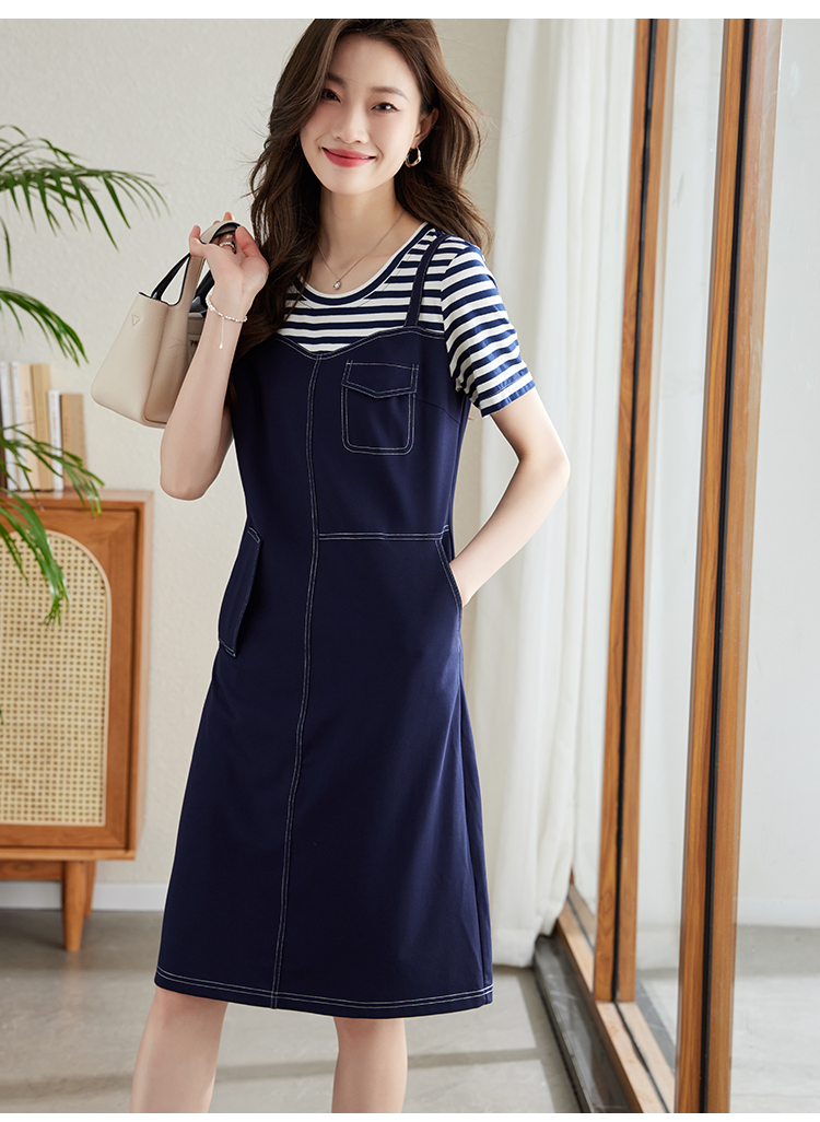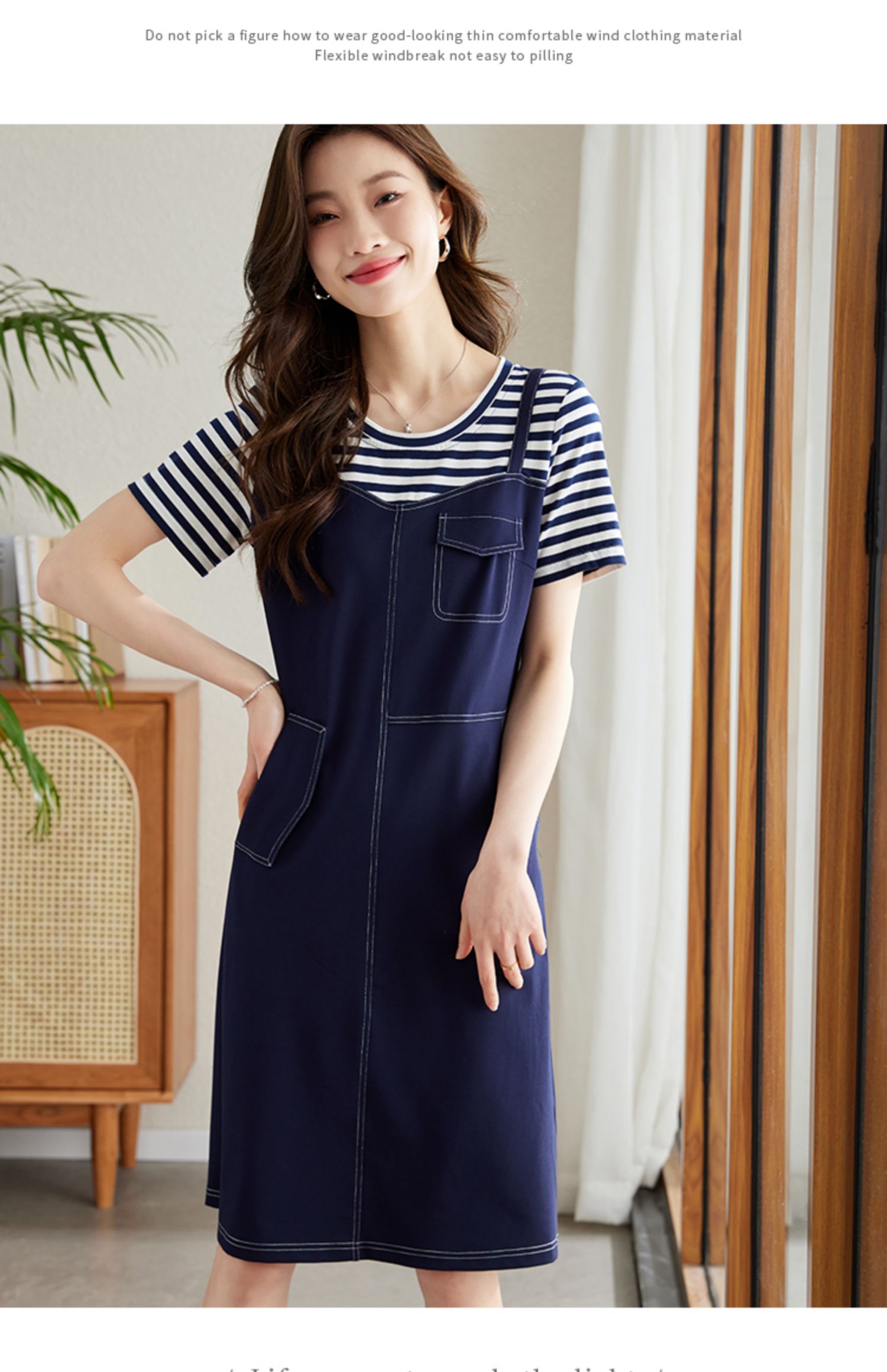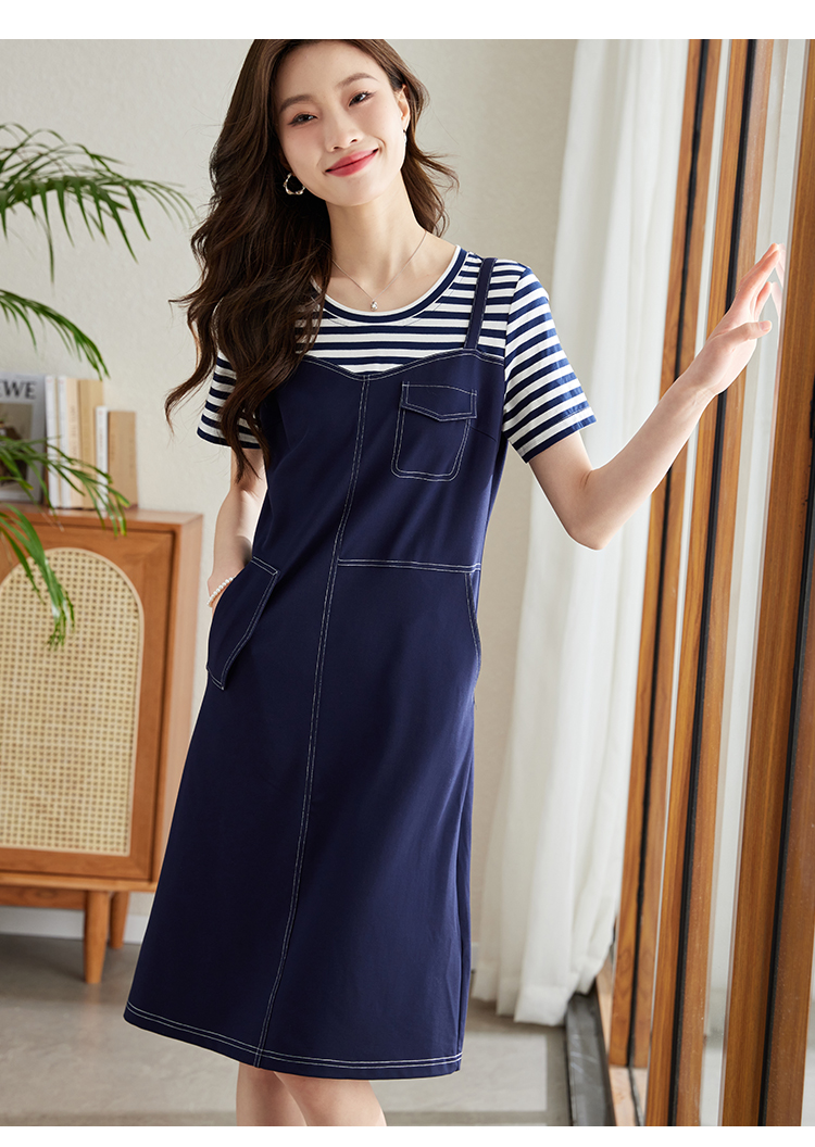 【专属特价】熙世界假两件拼接吊带牛仔连衣裙女2025夏季新款港风时尚显瘦裙子
