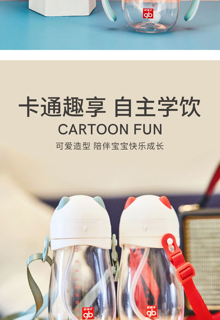 好孩子TRITAN吸管训练杯带握把铜珠210ML颜色随机JPY带授权招加盟代理