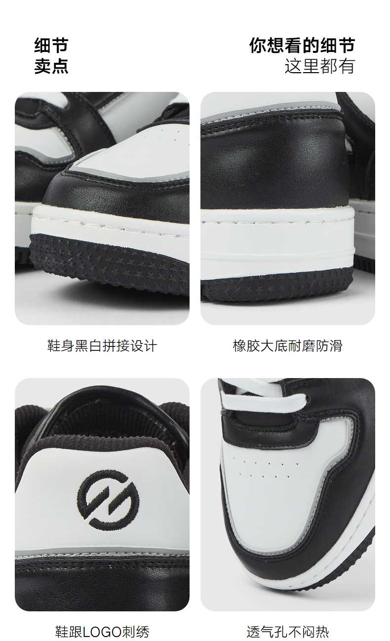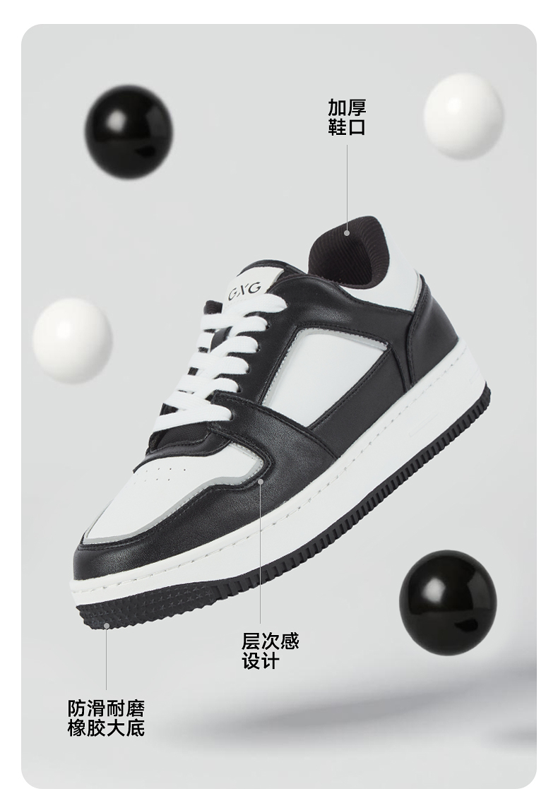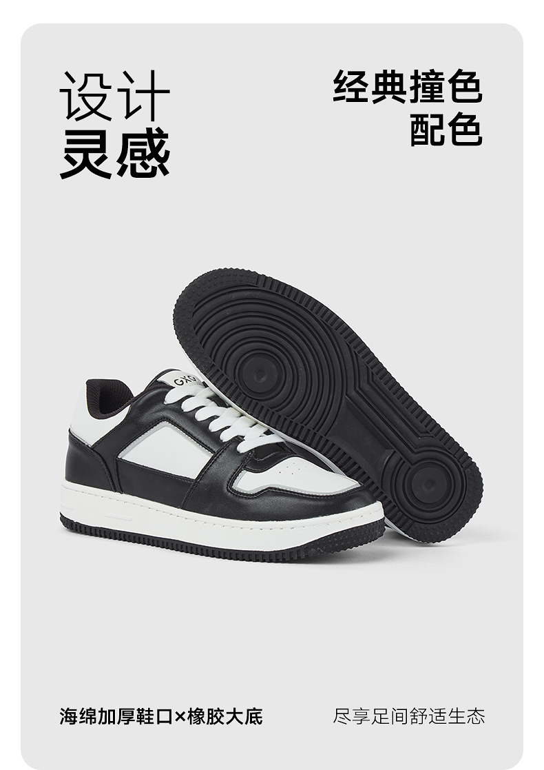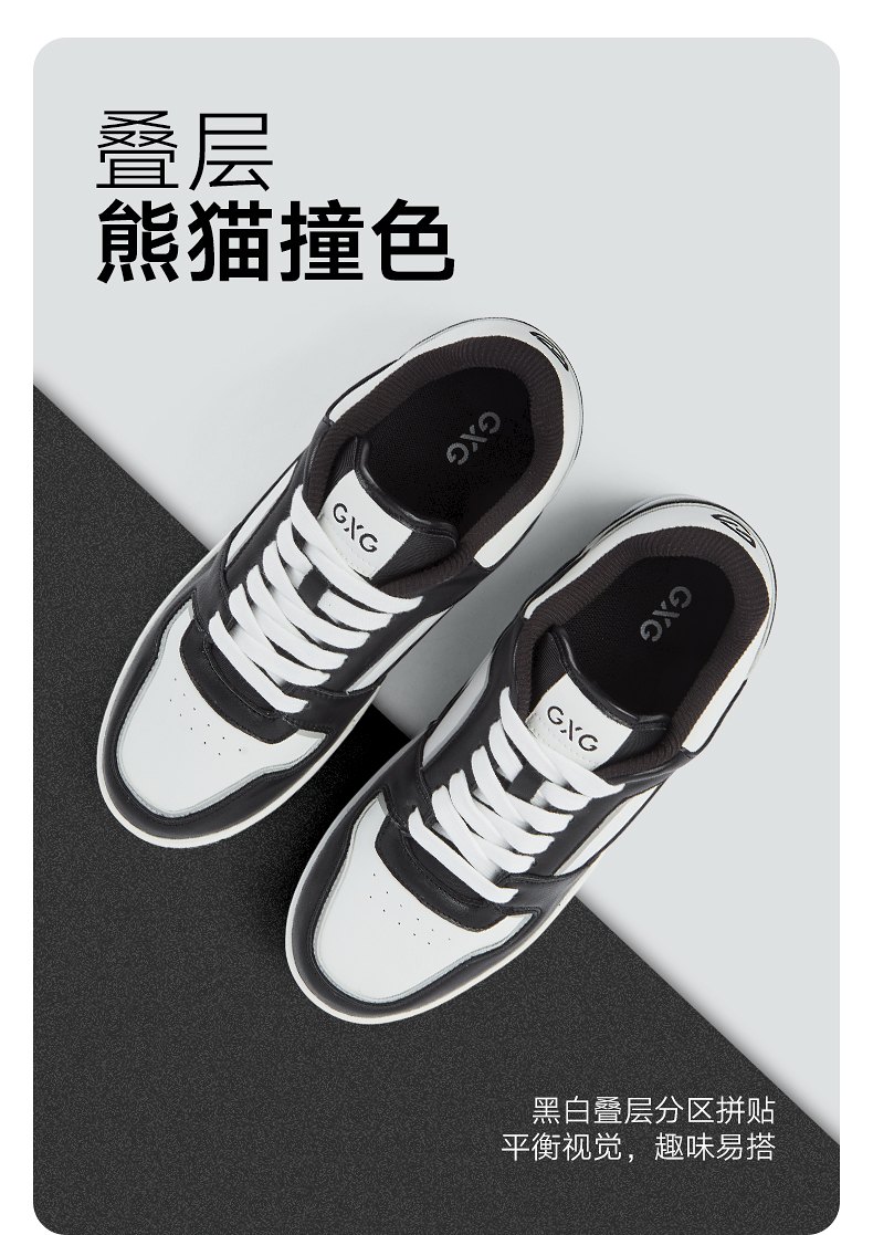 GXG通勤男鞋简约休闲运动鞋经典黑白熊猫配色休闲板鞋