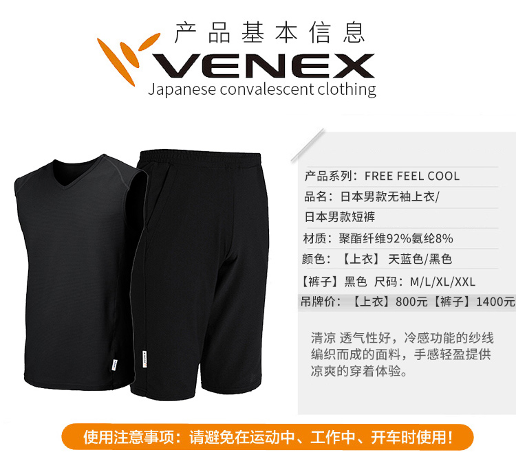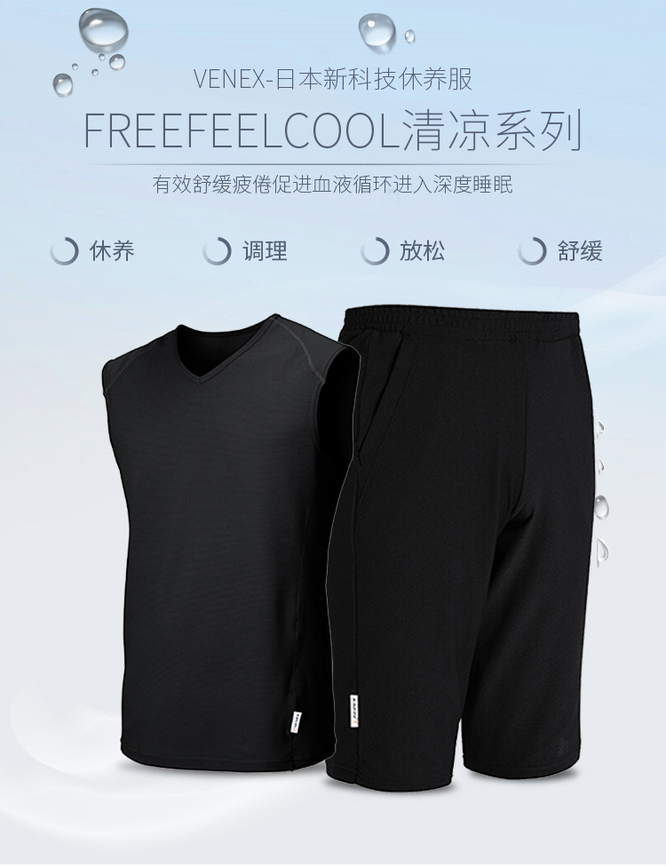 VENEX休养衣超薄系列男款短袖无袖V领上衣裤子