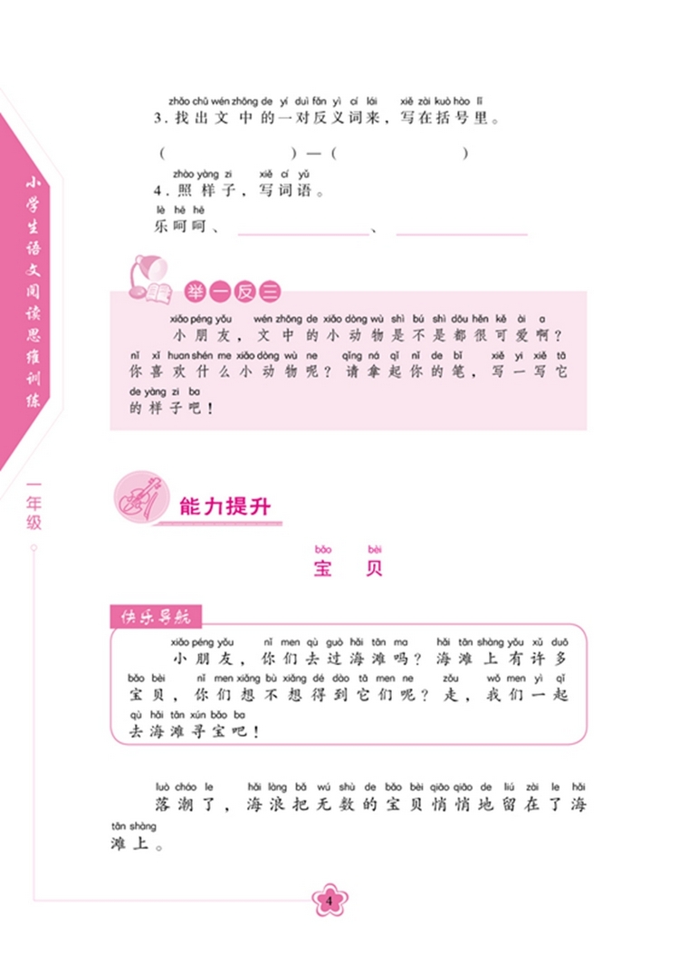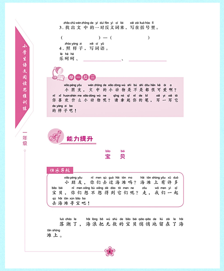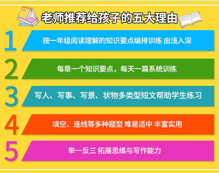 着眼于提升孩子的语文素养和学习能力,我们组织有经验的一线教师精心编写了这套《小学生语文阅读思维训练》。本套书紧扣新课标,进行阶梯式的思维训练,文章适合学生阅读,抓住阅读方法,突破阅读难点,提升阅读能力,让孩子学会阅读。每个年级按按知识点串联全书,每个知识点的小节包含趣味故事、方法指导、基础达标、能力提升、拓展延伸、真题训练六个栏目。孩子会在大量的、多种方式的课外阅读实践中反复运用课内学到的阅读知识和方法,逐步形成较强的阅读能力。