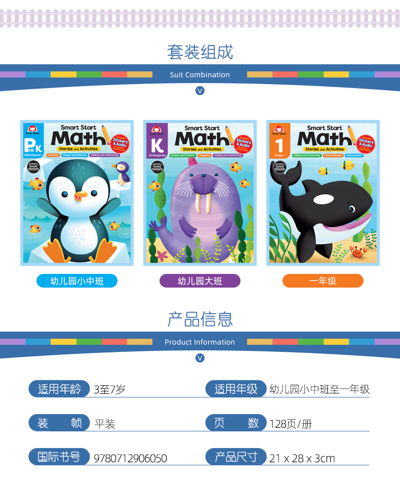 【言仔好忙】Evan-Moor Smart Start Math Set. 聪慧启蒙 数学系列 3册套装