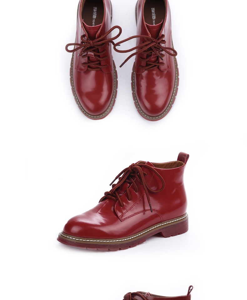 西村名物2020新款春季高帮皮面英伦风低跟马丁靴女鞋X20AM16441