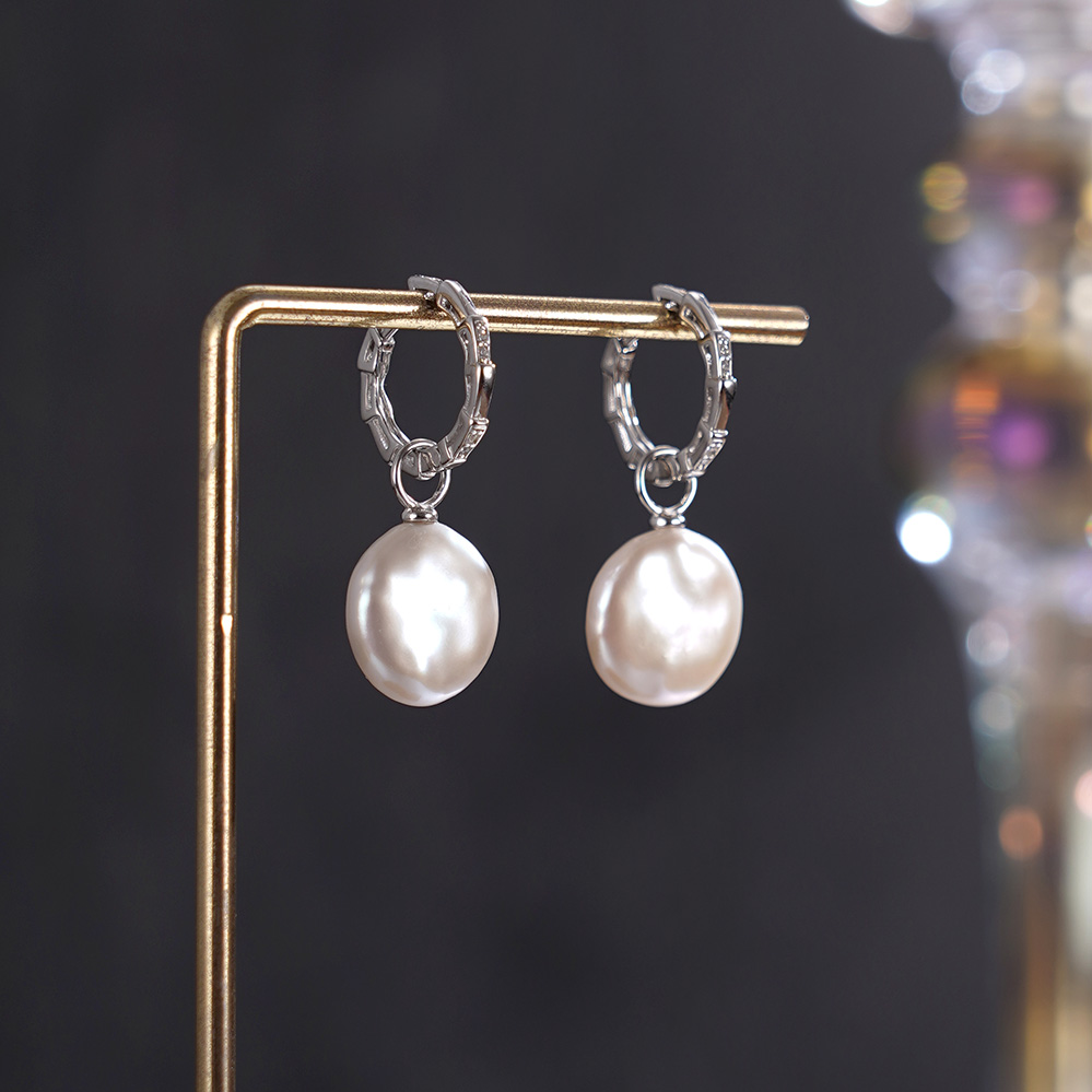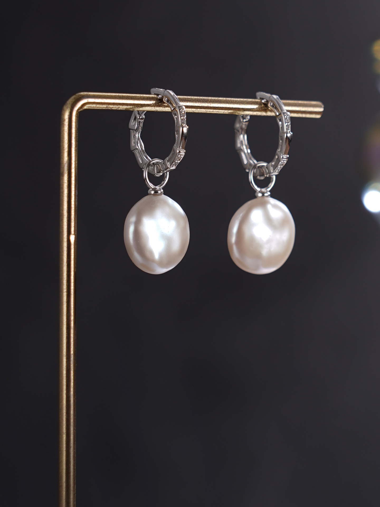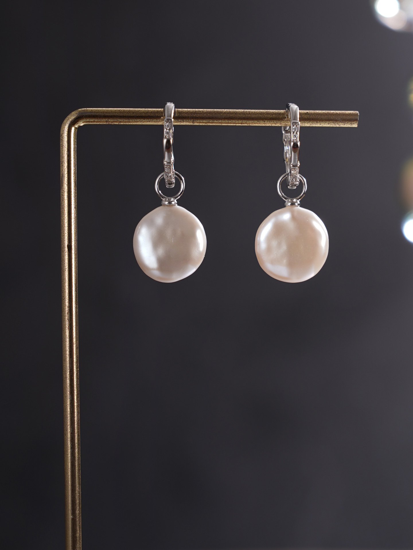 子佩集【月色尚浅】银S925珍珠惜王妃耳环【SPE0620001】13mm珠巴洛克扁珠扣环圆圈2601