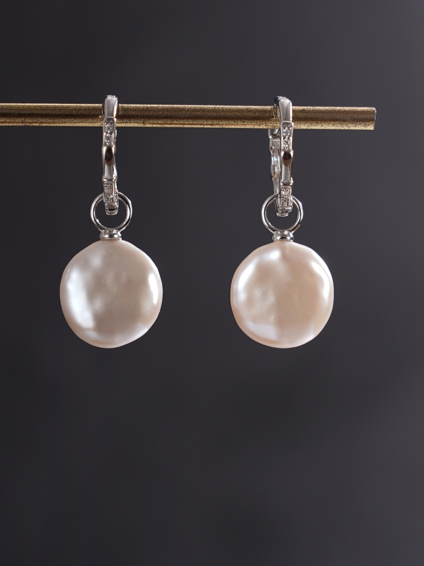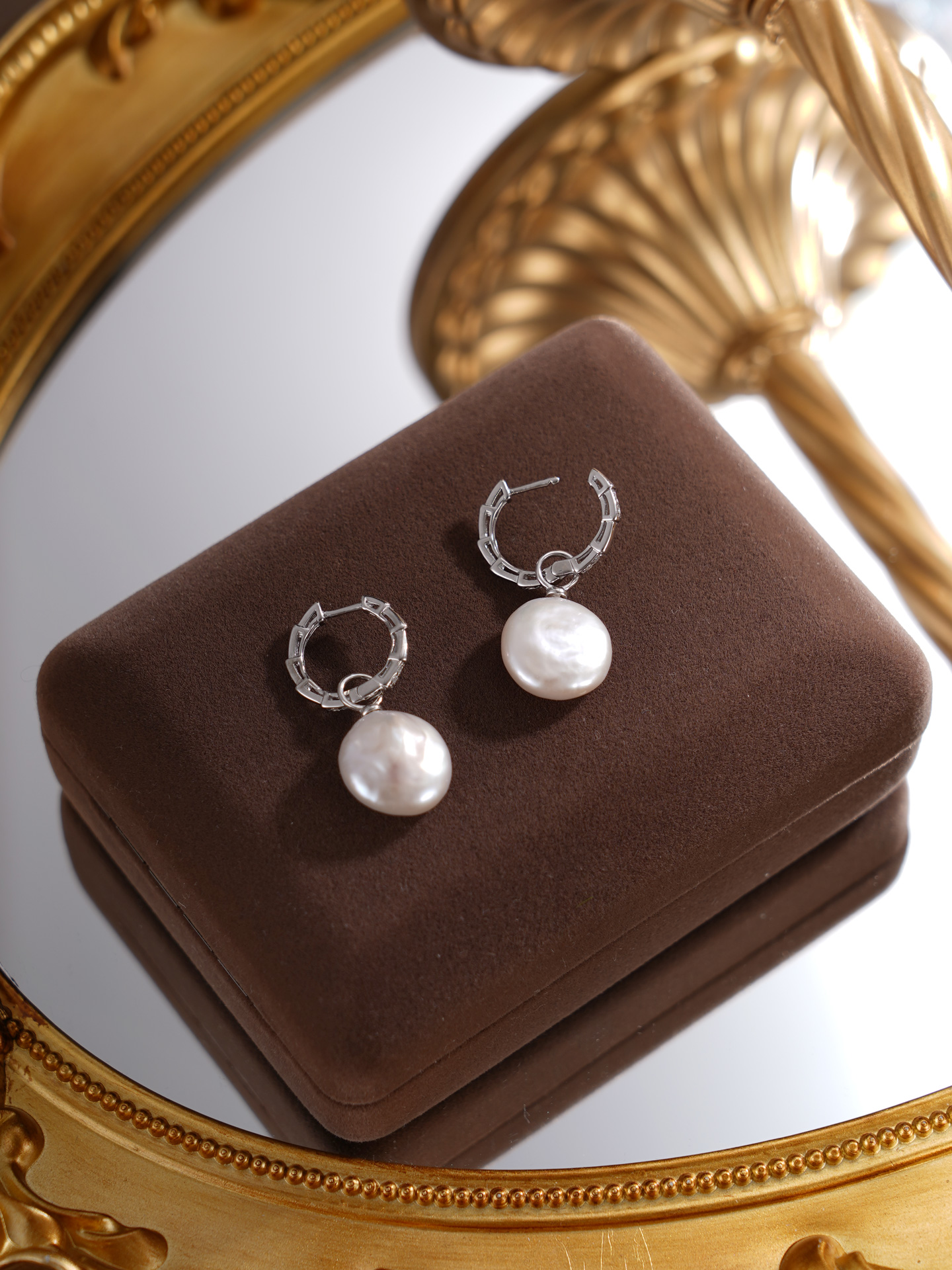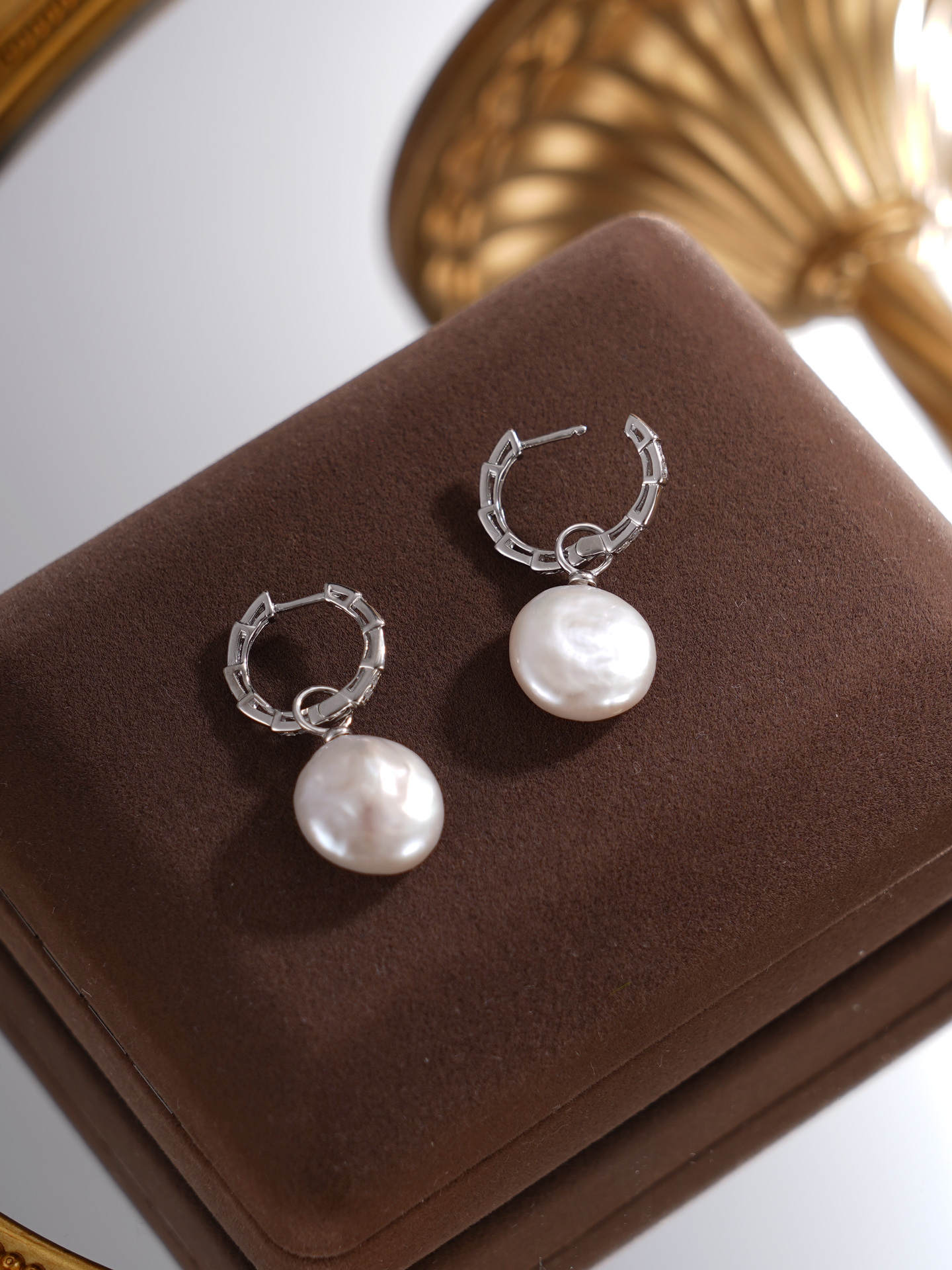 子佩集【月色尚浅】银S925珍珠惜王妃耳环【SPE0620001】13mm珠巴洛克扁珠扣环圆圈2601