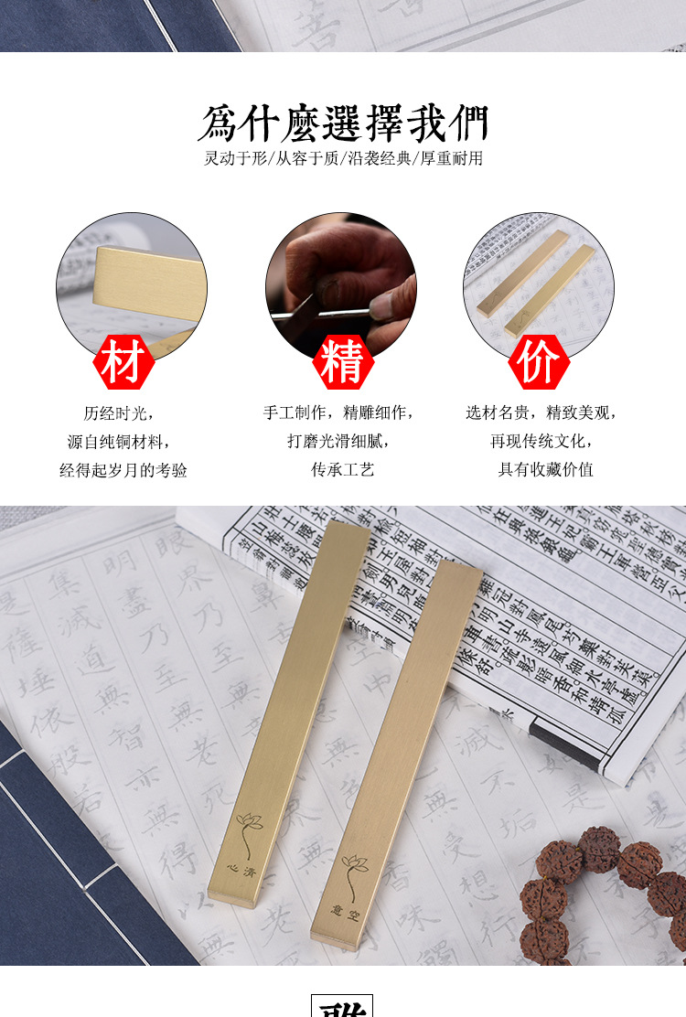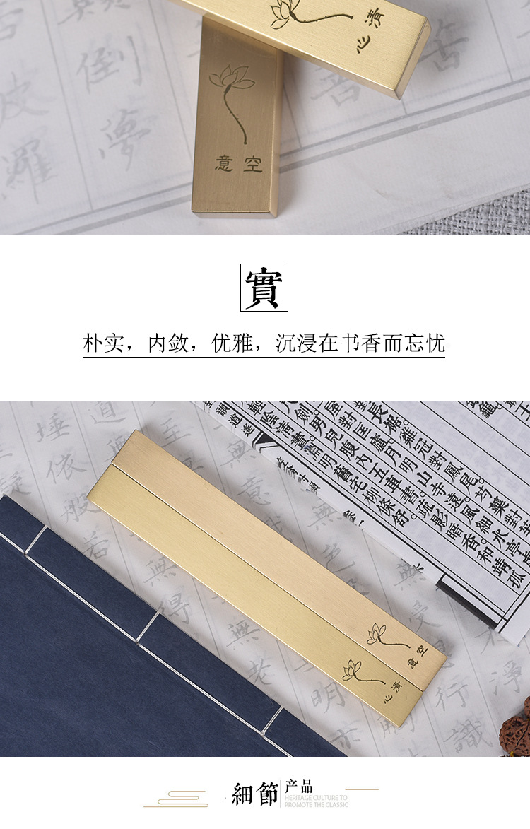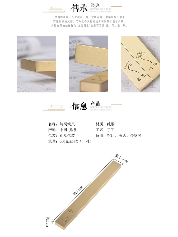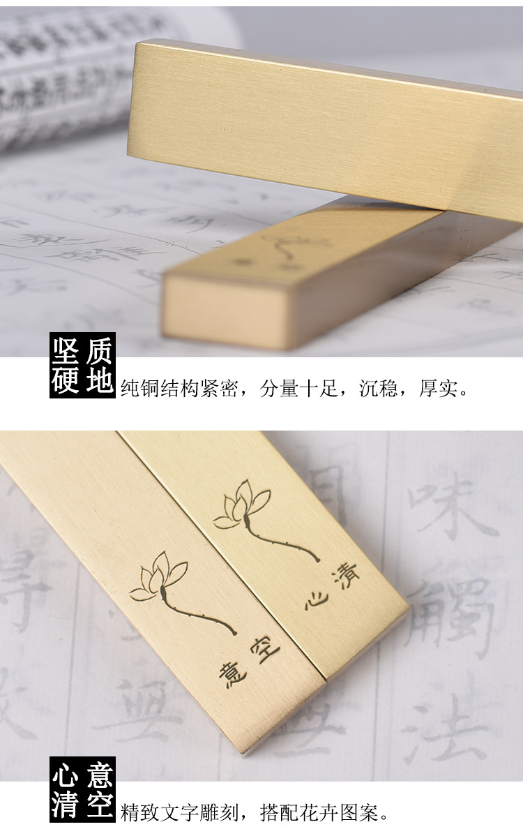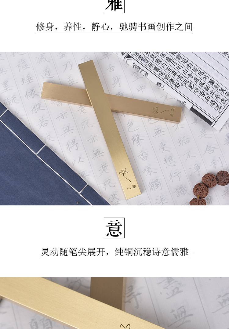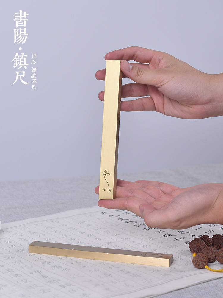 简约复古文房纯铜镇尺带礼盒学生初学者入门镇纸国画书法用品文镇