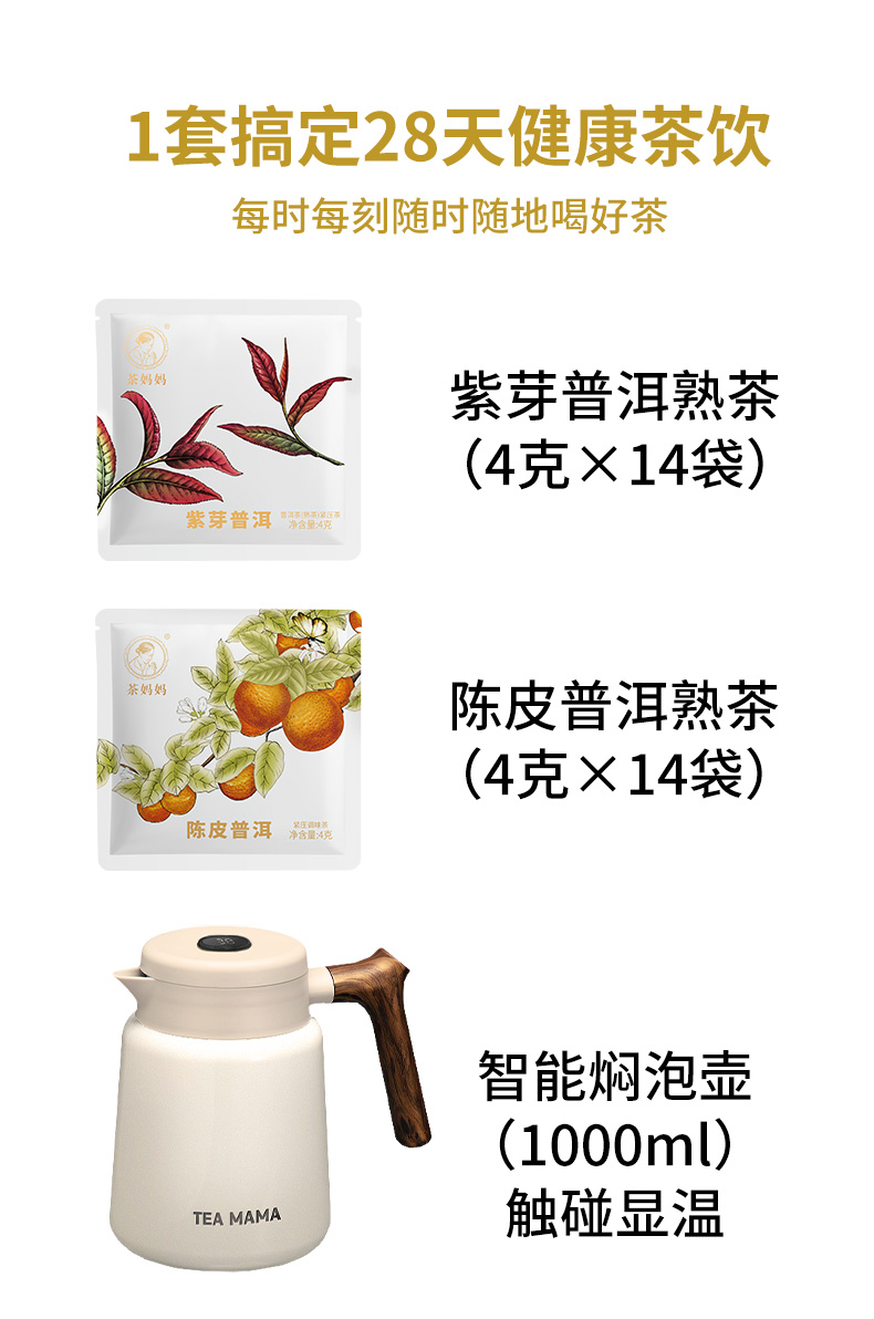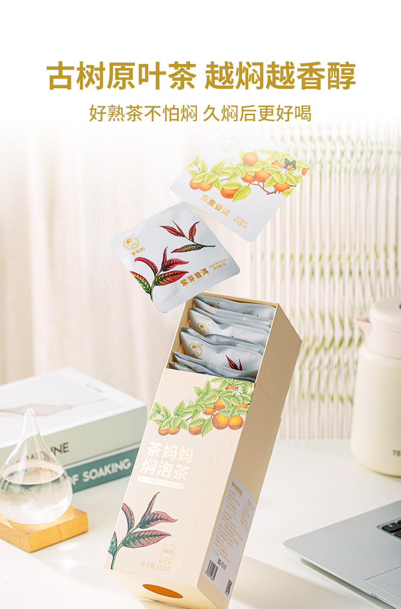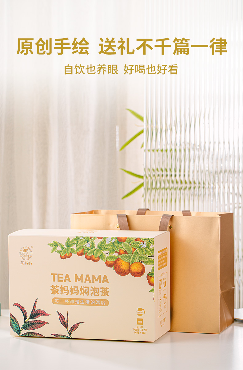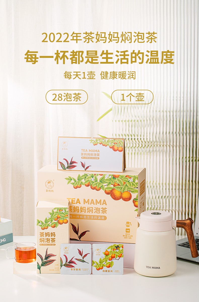 【字节内购】澜沧古茶2022年茶妈妈焖泡茶紫芽茶陈皮普洱茶熟茶礼盒装(送茶妈妈袋泡茶,玫瑰红茶、暖姜红茶、玫瑰白茶各18泡共54泡)