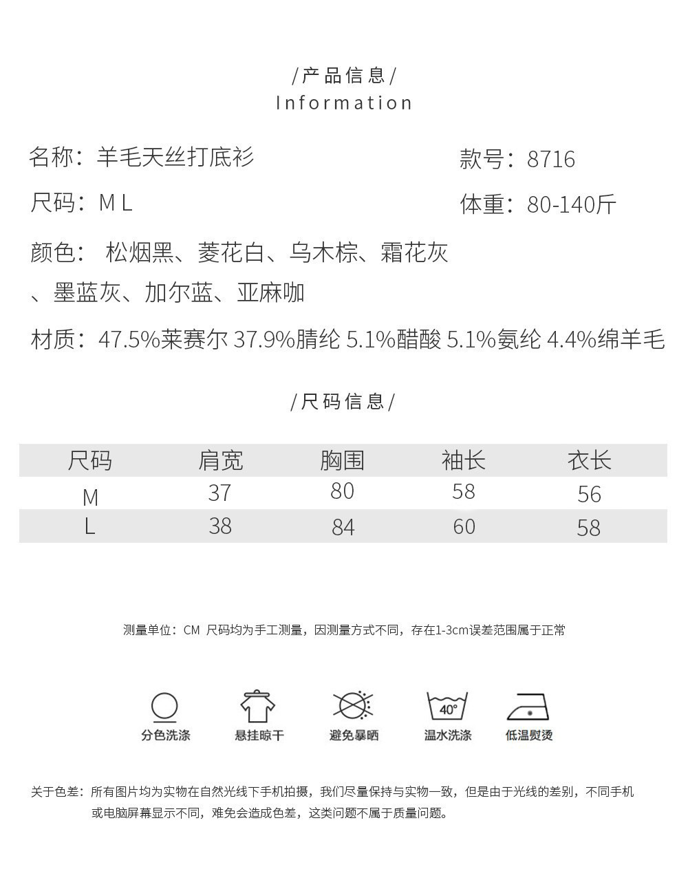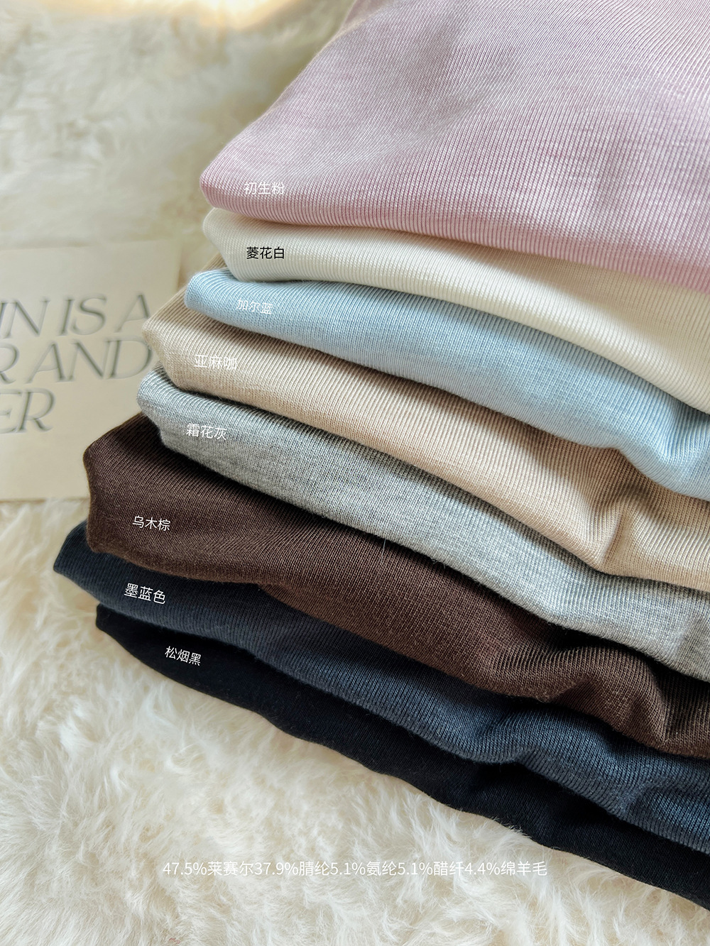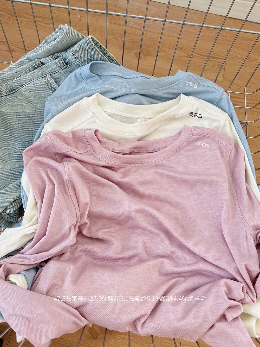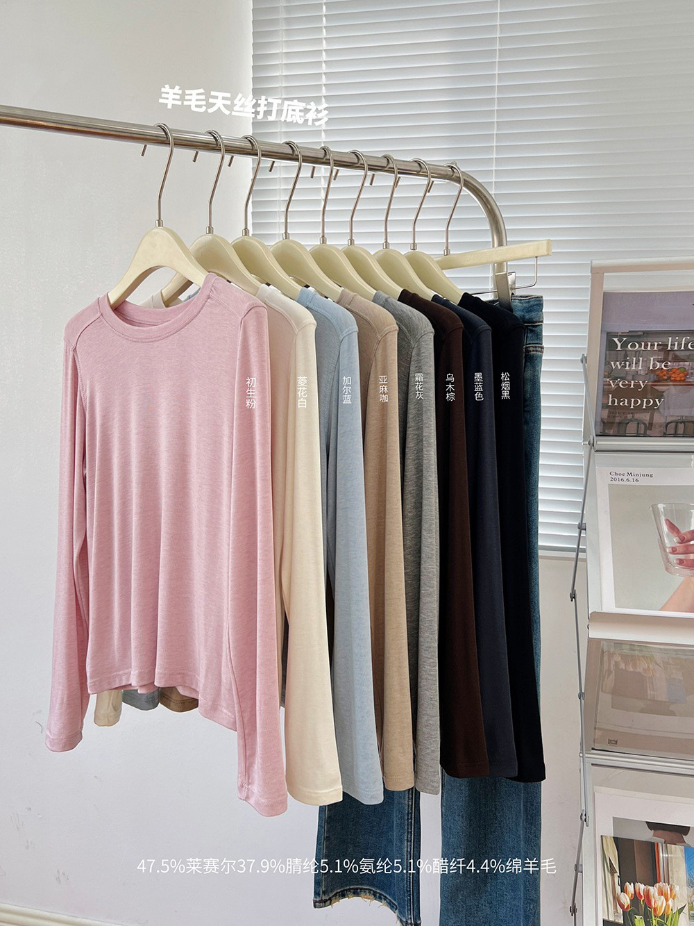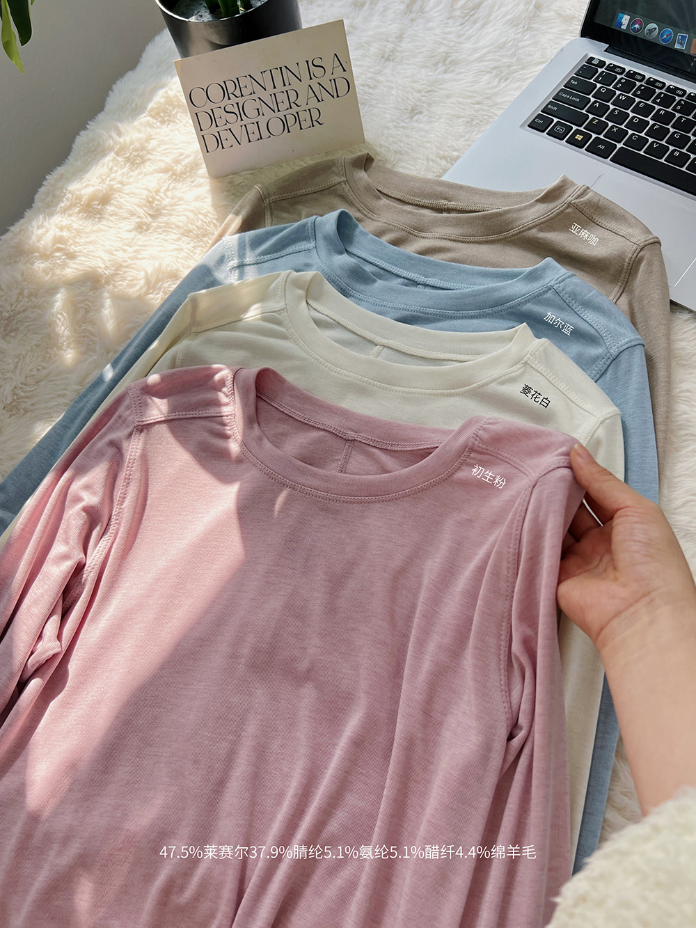 春夏季新款福利【软糯天丝羊毛打底衫限时立减40元】时尚百搭 韩系圆领长袖T恤内搭上衣