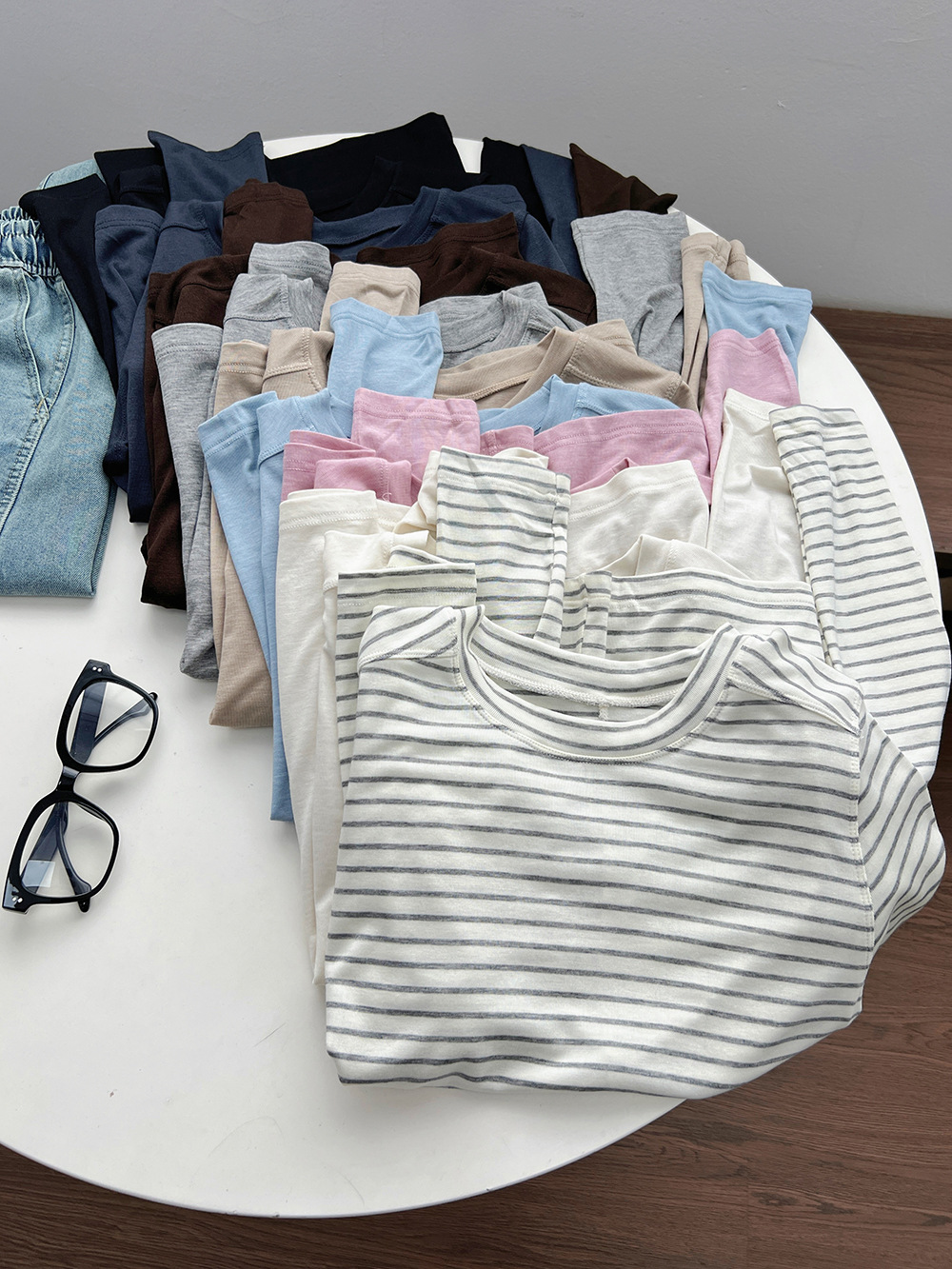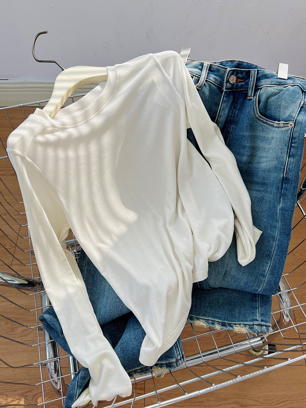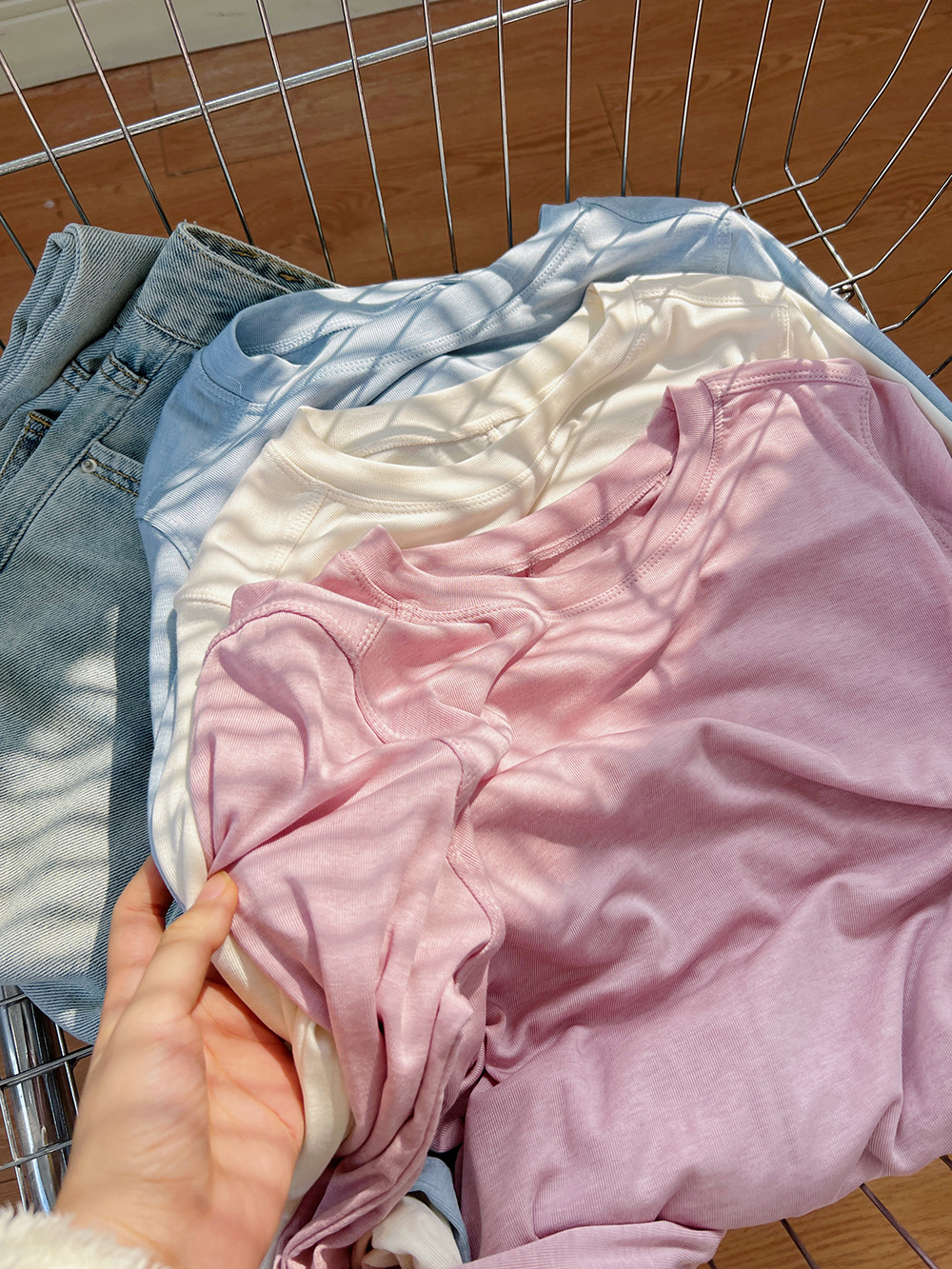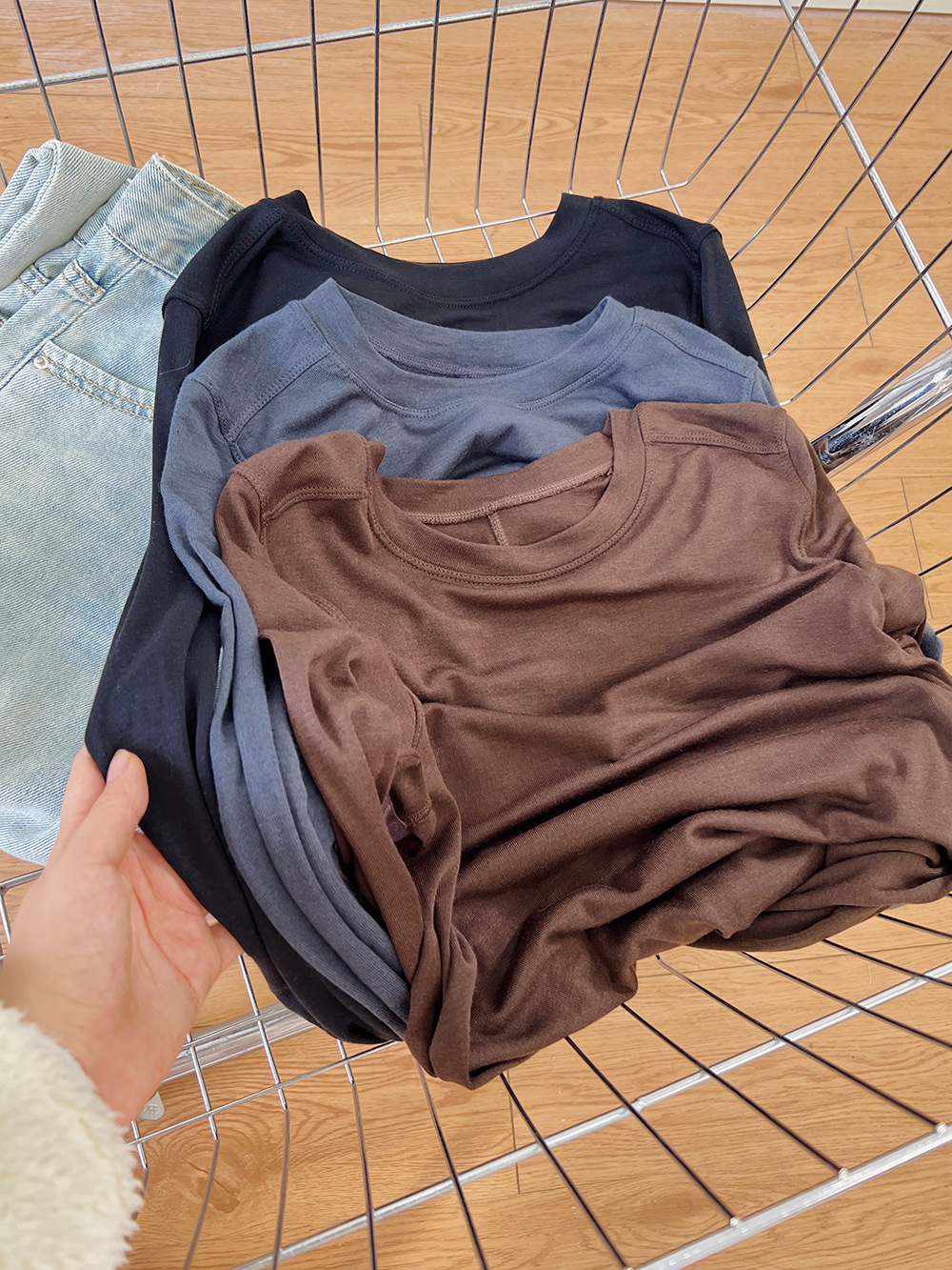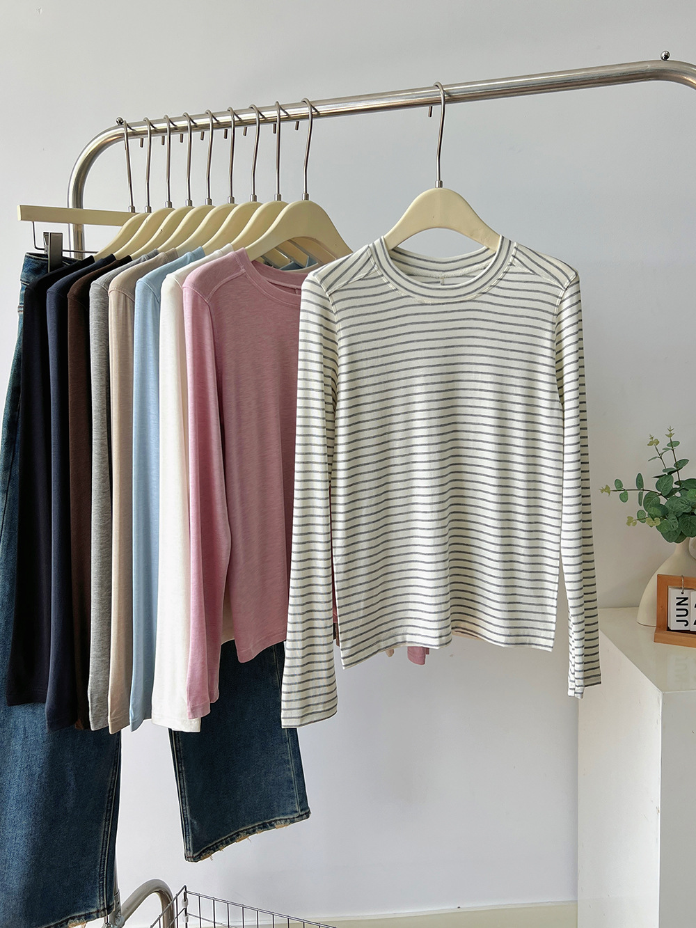 春夏季新款福利【软糯天丝羊毛打底衫限时立减40元】时尚百搭 韩系圆领长袖T恤内搭上衣
