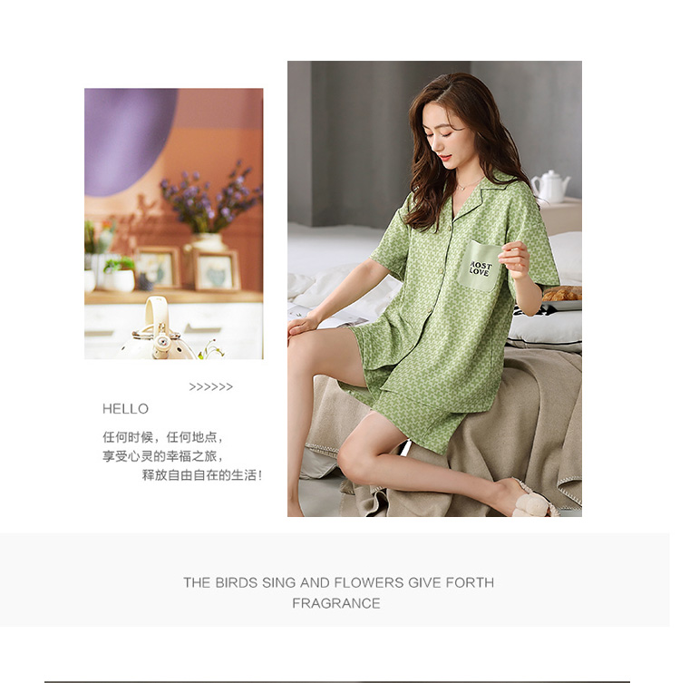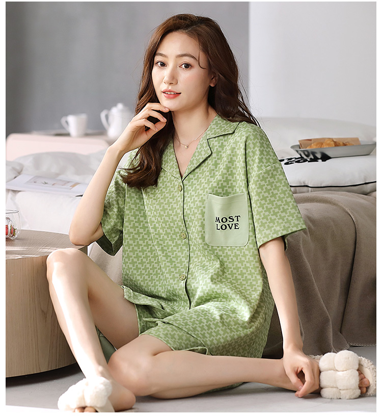 洁丽雅春夏新品女士家居服涤棉圆短袖短裤套装可外穿睡衣女