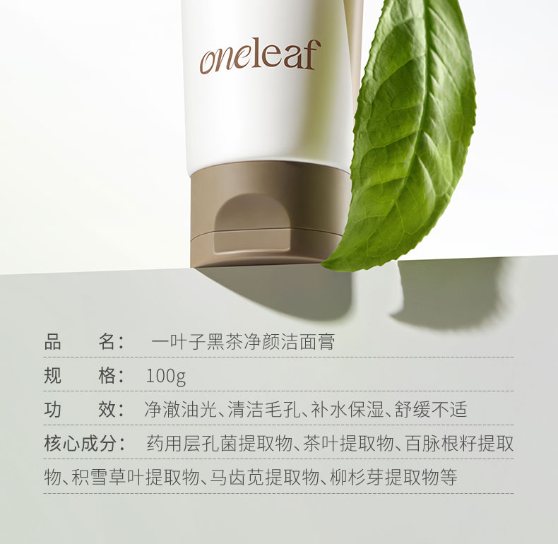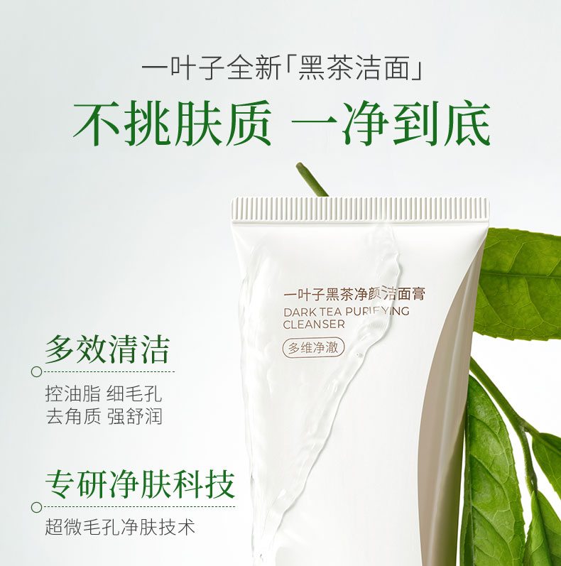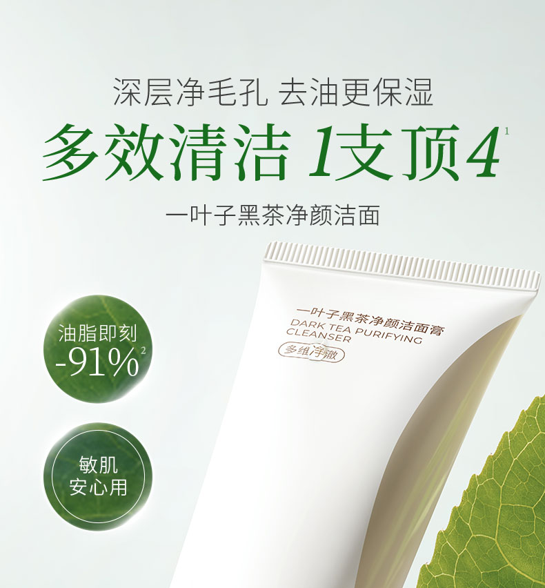【买1送1】一叶子黑茶净颜洁面膏100g-清洁卸妆保湿舒缓控油去角质