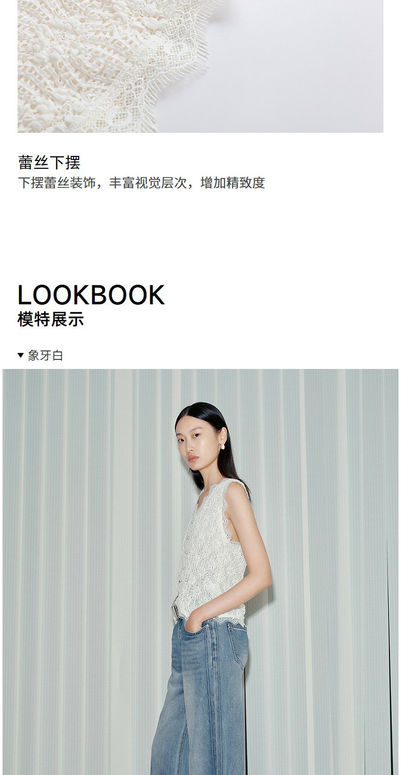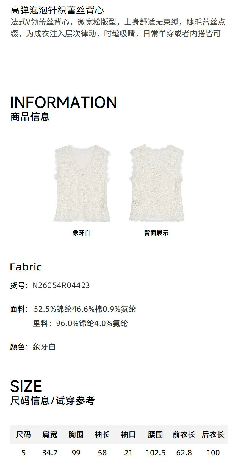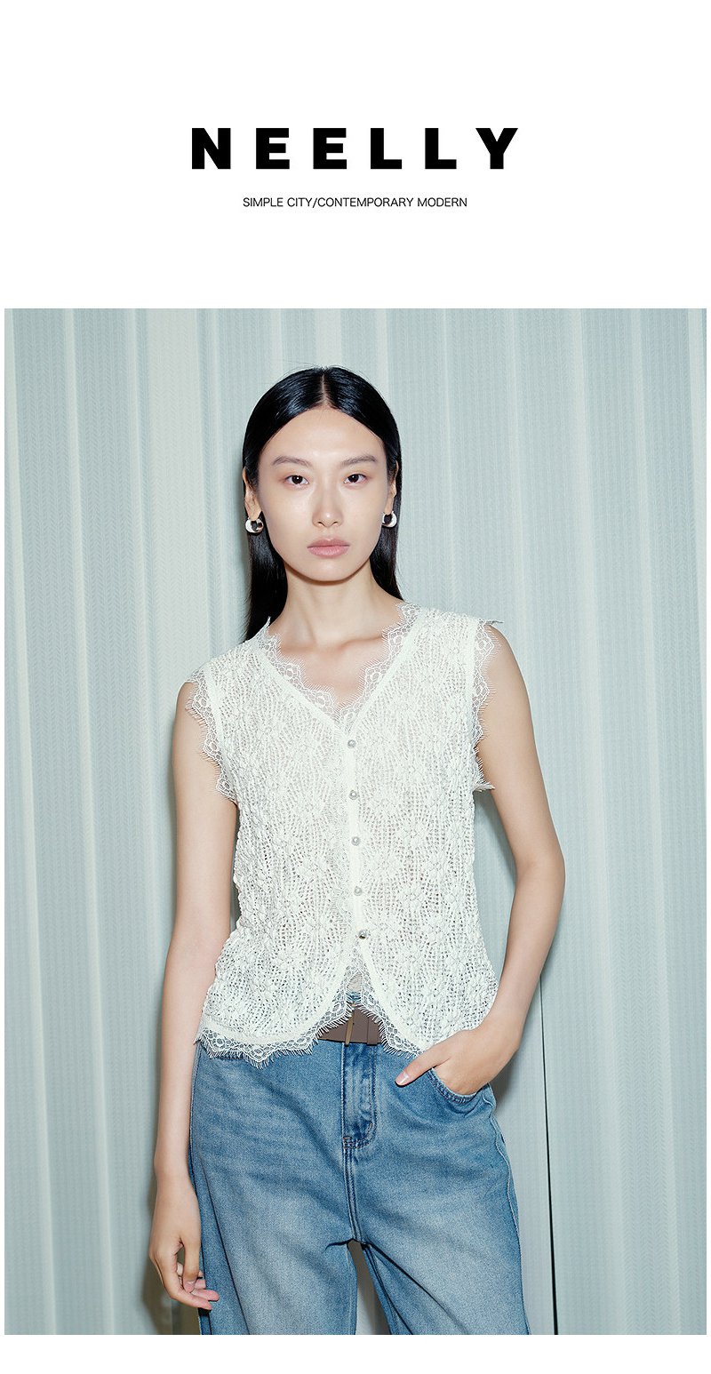 NEELLY纳俪商场同款夏季新款高弹泡泡针织蕾丝背心女气质舒适上衣N26054R04423